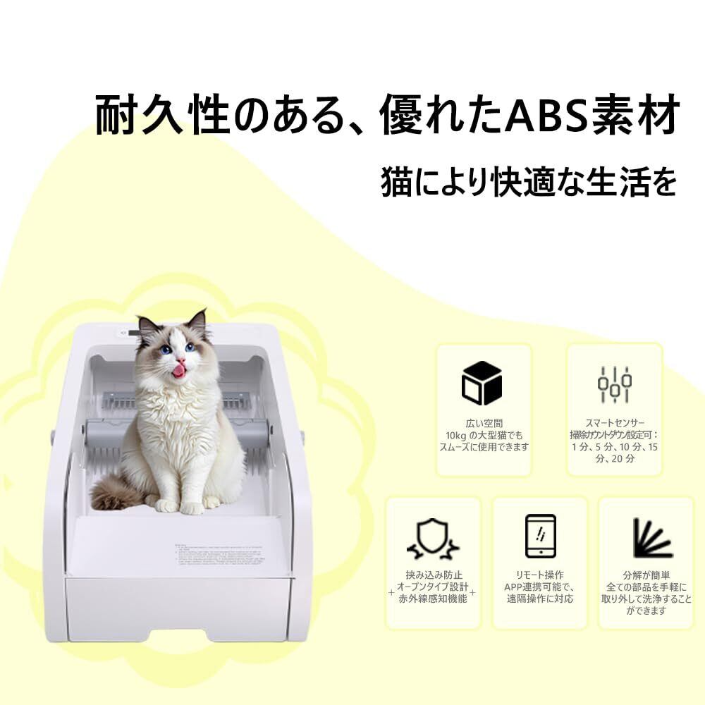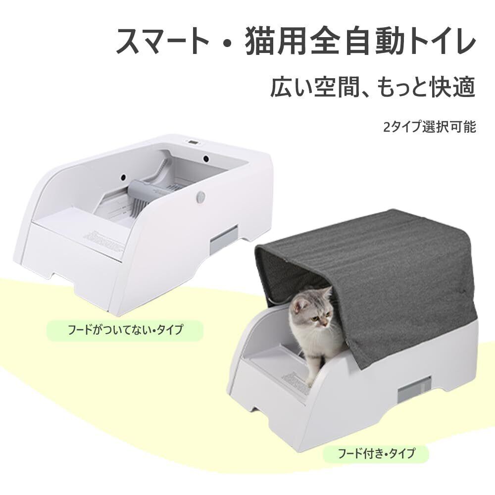 UEEYAC(ユーヤク) 猫用全自動トイレ 猫 自動 トイレ 大型 静音 大容量 2タイプ:フード付き/フードなし 自動清掃 多頭飼い オープンタイプ 広い空間 挟み込み防止 赤外線センサー アプリ APP IOS/Android対応 飛び散らない ワンタッチで自動クリーンアップ お留守番 日本語説明書付き (猫用自動トイレ)