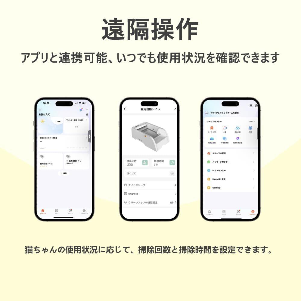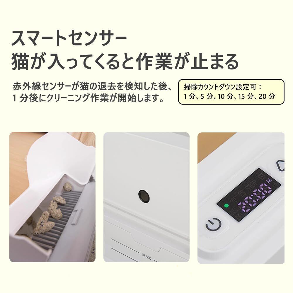 【優れた材質】ねこトイレがPP素材で作られて、頑丈アップし使用感も完璧、猫ちゃんが十分な活動できます。アプリ制御の全自動スマート猫用トイレ(基本Wi-Fiモデル)です。長さ1.5mの電源コードが付属しています。定格電圧と電力はそれぞれ12V/1Aと6Wで、エネルギー効率に優れています。