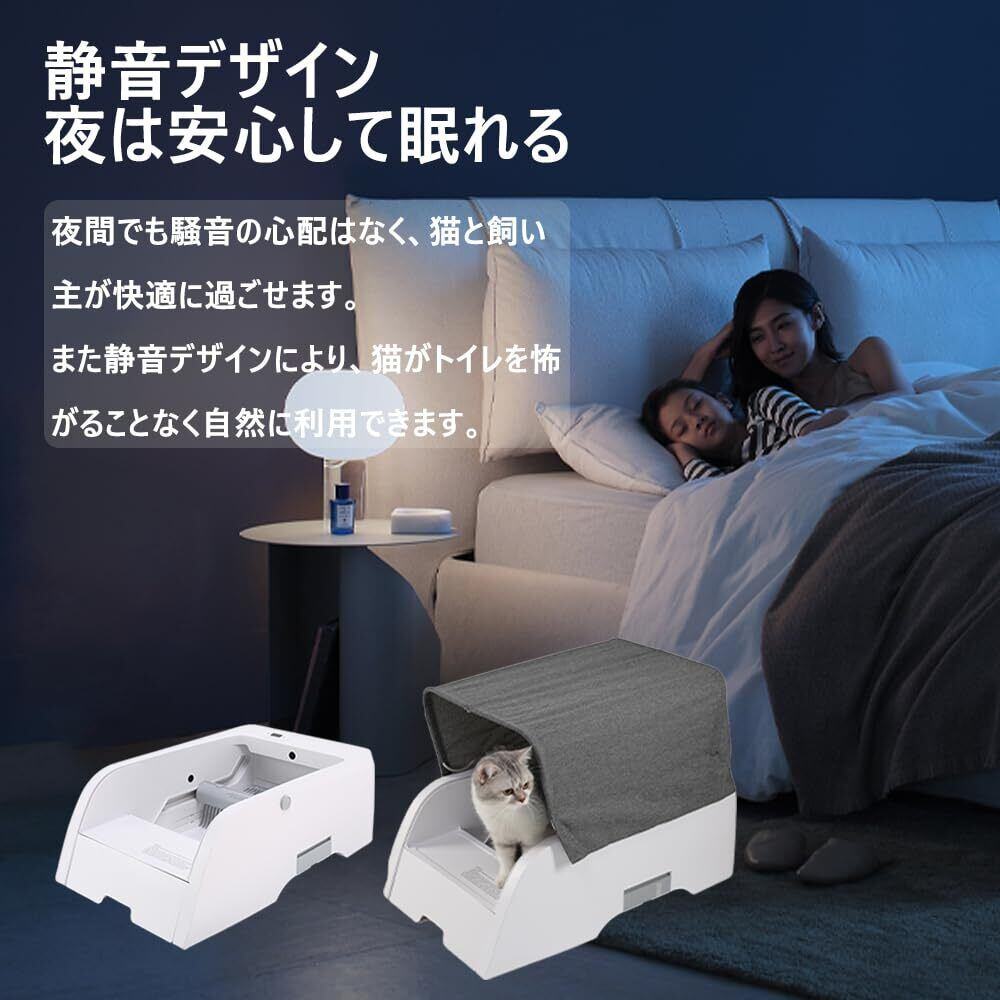 【静音運転】静音設計により、猫がトイレを怖がることなく自然に使用できます。運転時の音がほとんどしないがら、夜間でも音を気にすることなく、猫も飼い主も快適に眠れます。