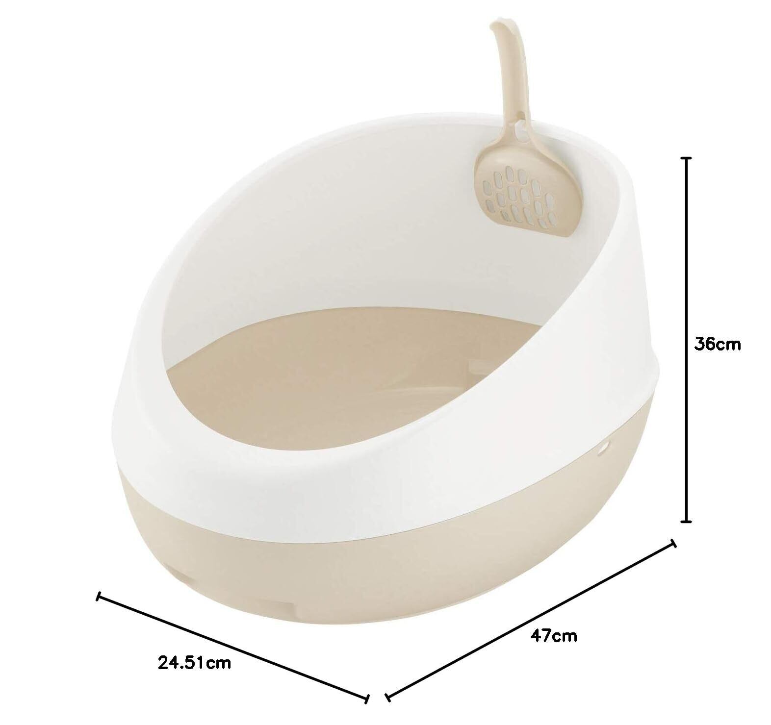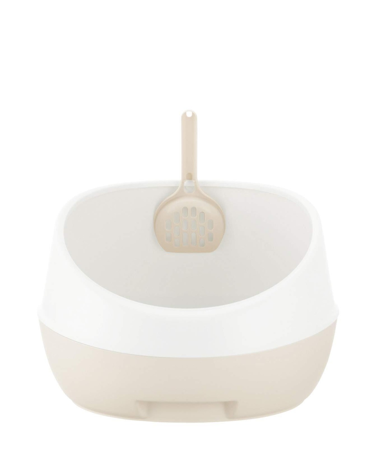 インテリアに馴染むカラーで猫と過ごすおしゃれ空間を演出。 猫砂が飛び散りにくいハーフカバータイプ。 背面の壁が高いので、砂かきによる猫砂の飛び散りを軽減します。 プラスチック製なので、水洗いできてお手入れ簡単です。 スコップは、本体の内側に掛けることができます。