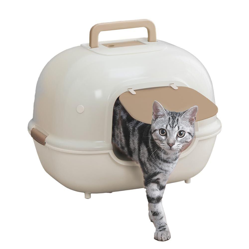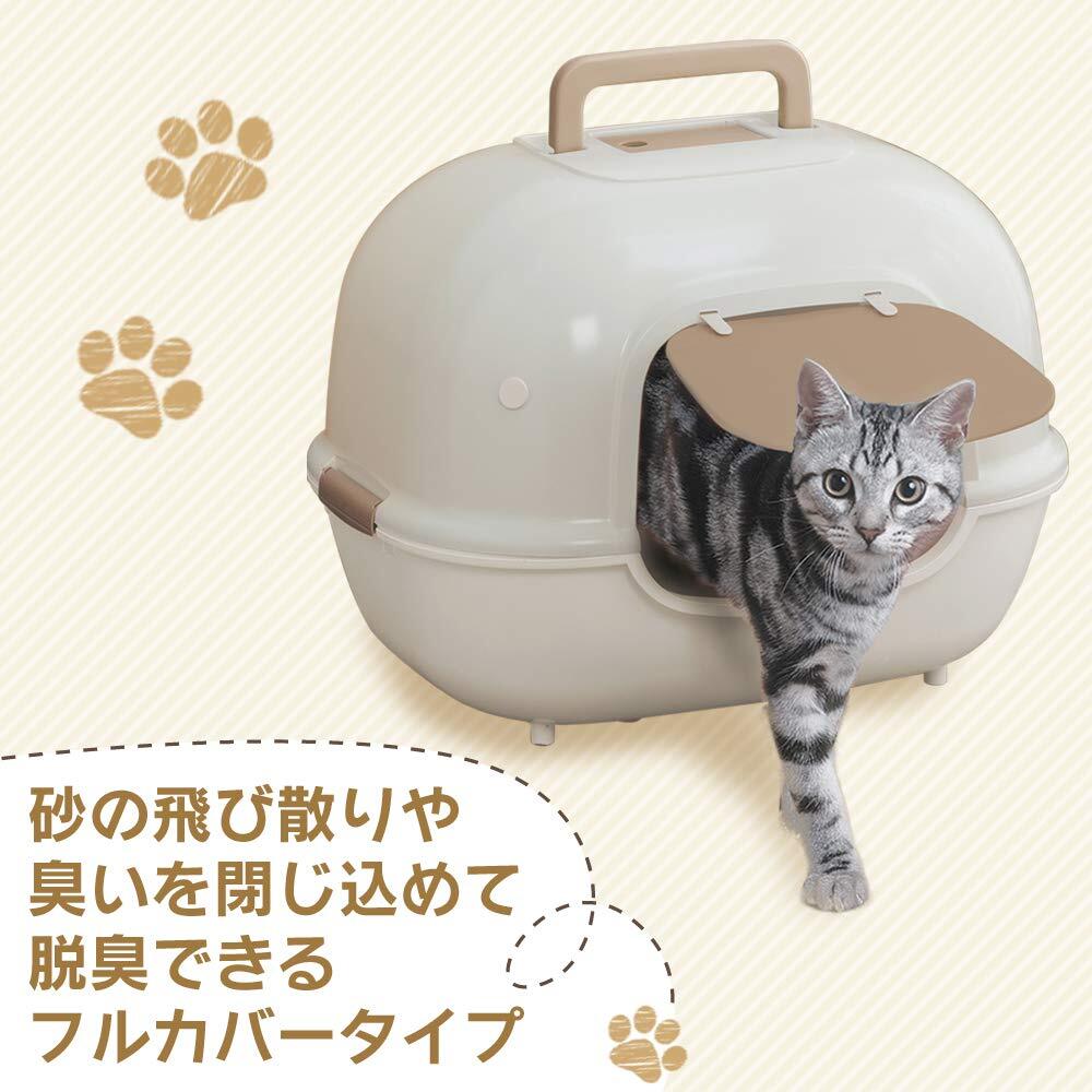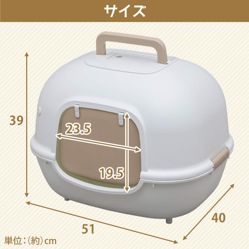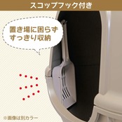 コンパクトサイズでケージの中にぴったり置ける、猫用トイレです。横漏れ防止構造でおしっこが壁面をつたって外に漏れるのを防止します。トイレの内側にスコップを収納できるので見た目もスッキリ。臭いが広がりにくい扉付きフルカバーを採用。 脱臭剤が入れられるポケット付きです。ワイドな出入り口なので、身体の大きな猫ちゃんにも安心です。ペットケージ PEC-902・PEC-903にぴったり置けます。