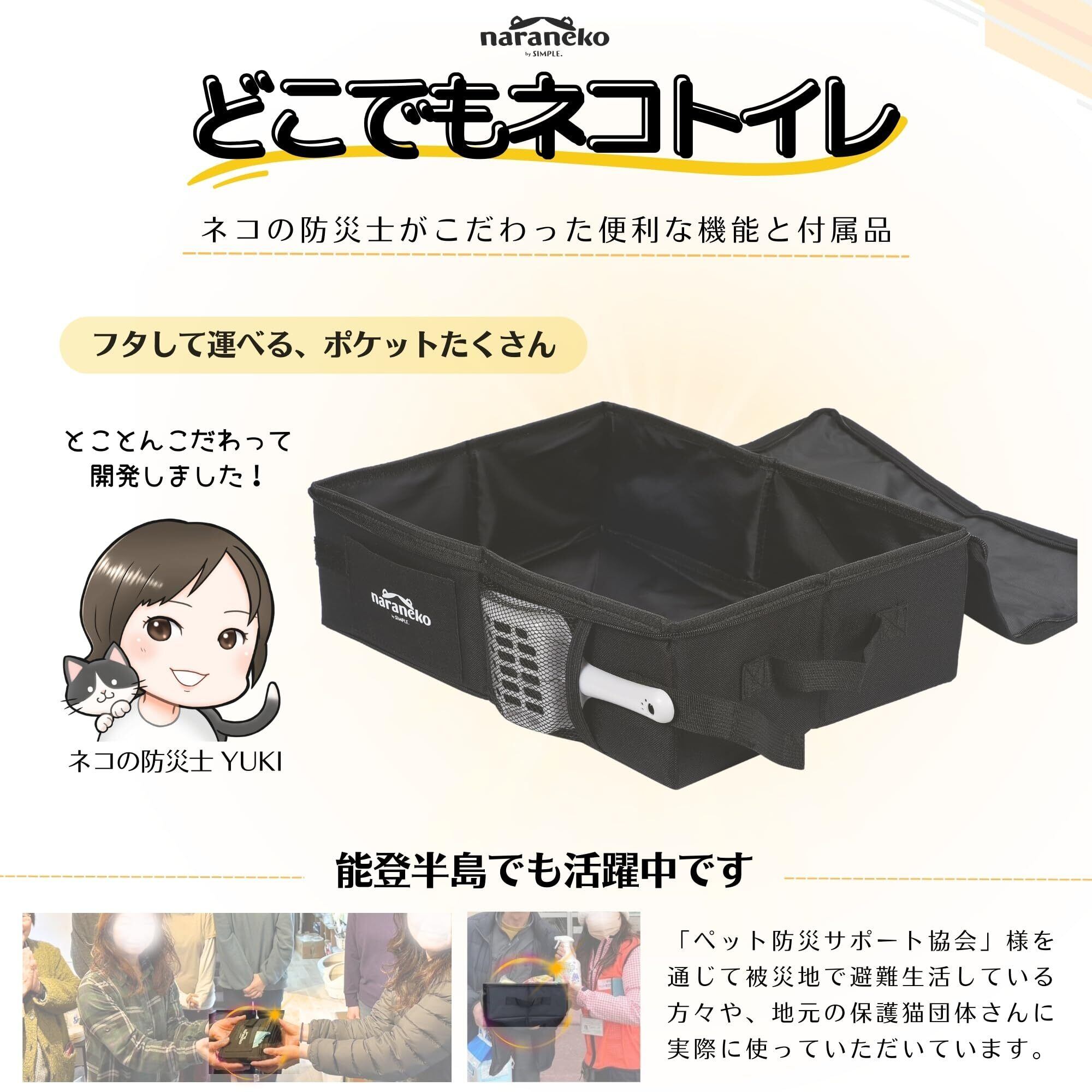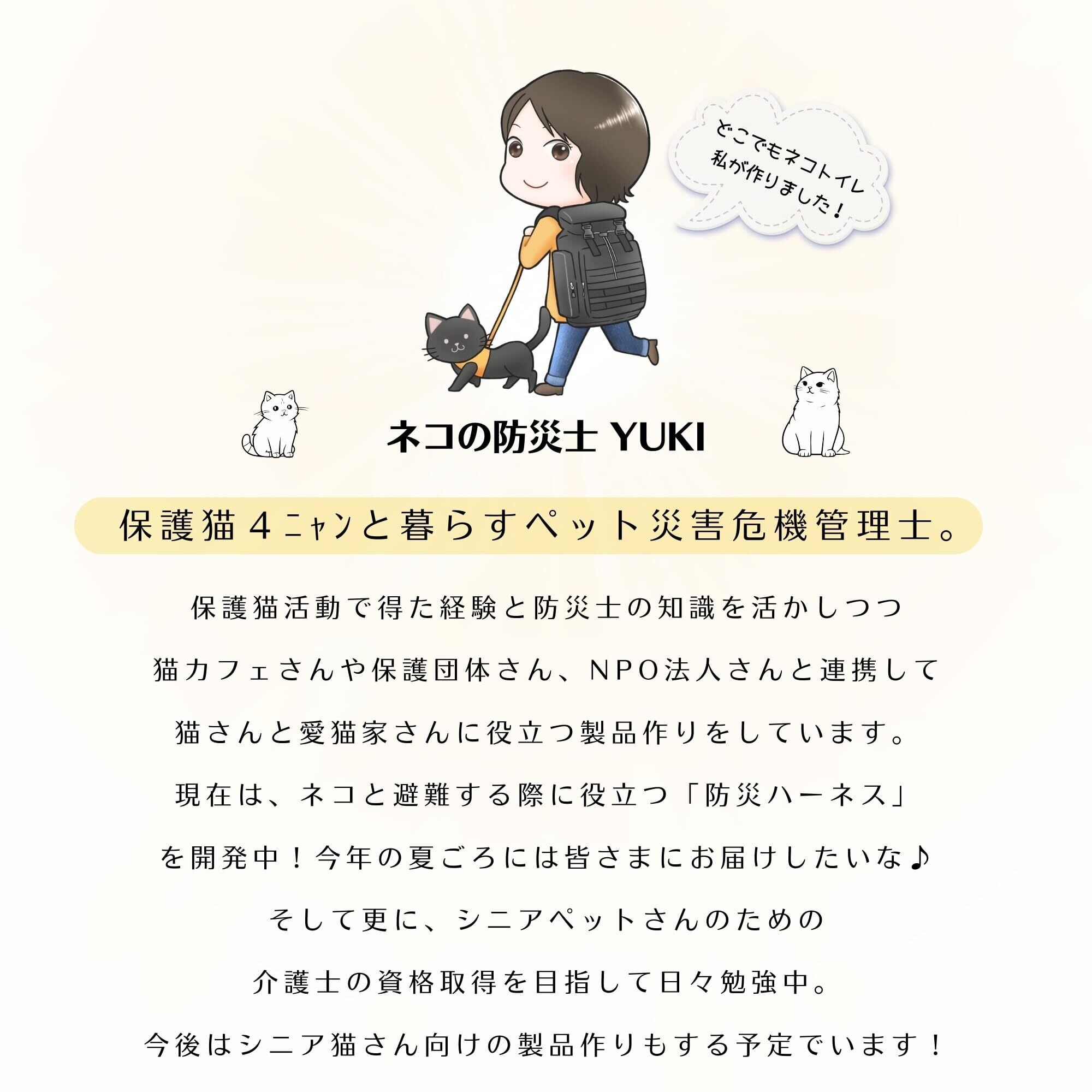 保護猫活動をしているネコの防災士がとことんこだわって作った折りたたみトイレが「どこでもネコトイレ」です。実際に猫と暮らすなかで様々なポータブルトイレを使用し、こんなのあったらいいな!こんな機能あったら便利なのになぁ・・をカタチにしました。たくさんの愛猫家さんに使っていただければ幸いです。