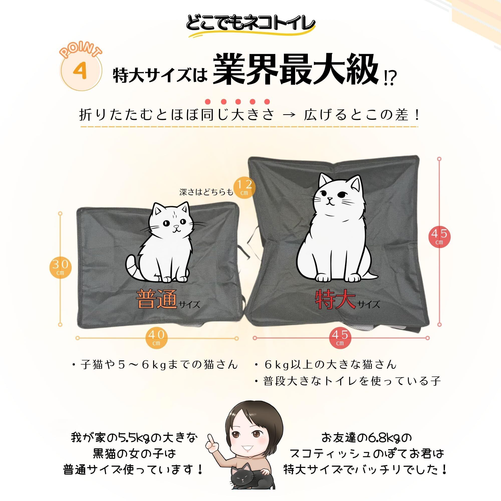 【しっかりした作り、でもコンパクトに持ち運び】丈夫で摩擦に強い素材を厳選したので、トイレ後に一生懸命に砂をかく子ややんちゃ盛りで暴れん坊な子でも安心。広げると40㎝×30cmあるので8kgほどの大柄な猫ちゃんもお使いいただけます。