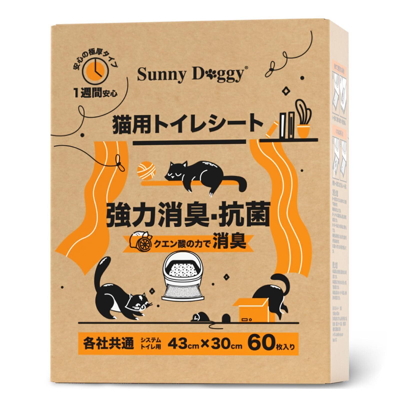 SUNNY DOGGY 猫 トイレシート 60枚大容量 1週間におわない 強力消臭 システムトイレ用 極厚タイプ 猫用シート ペット 猫トイレ用