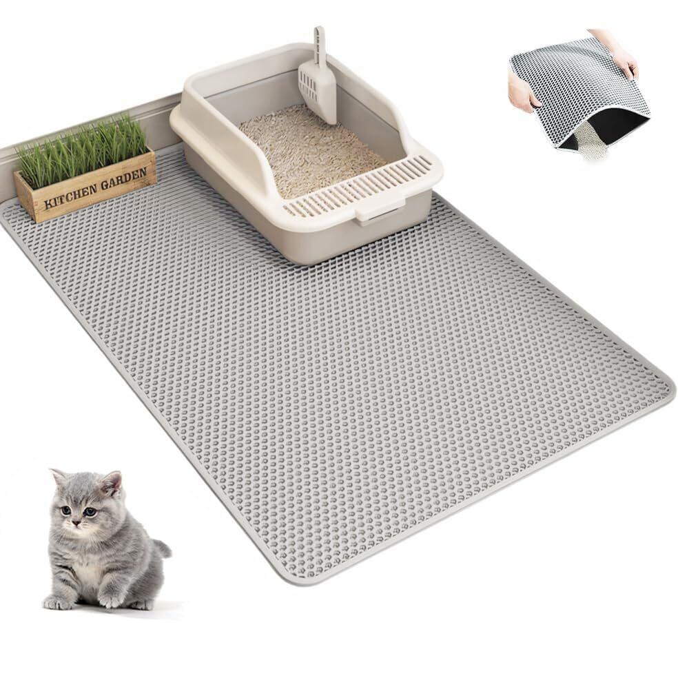 猫砂マット 特大猫砂マット 90×60cm 多機能 猫トイレマット 猫砂取りマット 二重EVA 猫マット ハニカムデザイン 滑り止め 防水や尿の浸透防止 猫 トイレ マット 飛び散り防止 マッサージ式 掃除簡単 猫用品(グレー)
