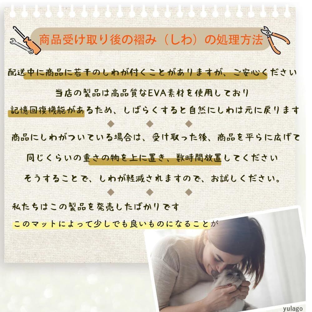 【商品受け取り後の褶みの処理方法】 配送中に商品に若干のしわが付くことがありますが、ご安心ください 当店の製品は高品質なEVA素材を使用しており 記憶回復機能があるため、 商品を平らに広げて 同じくらいの重さの物を上に置き、数時間放置してください そうすることで、しわが軽減されますので、お試しください