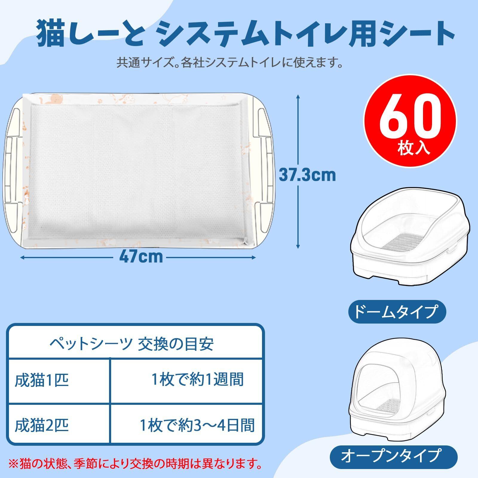 1パックに猫 システムトイレ シート60枚入りで。使い捨てなので、片付けがスムーズ、猫との暮らしがより快適になります。猫 トイレシート 一匹または複数の猫がいるご家庭に。