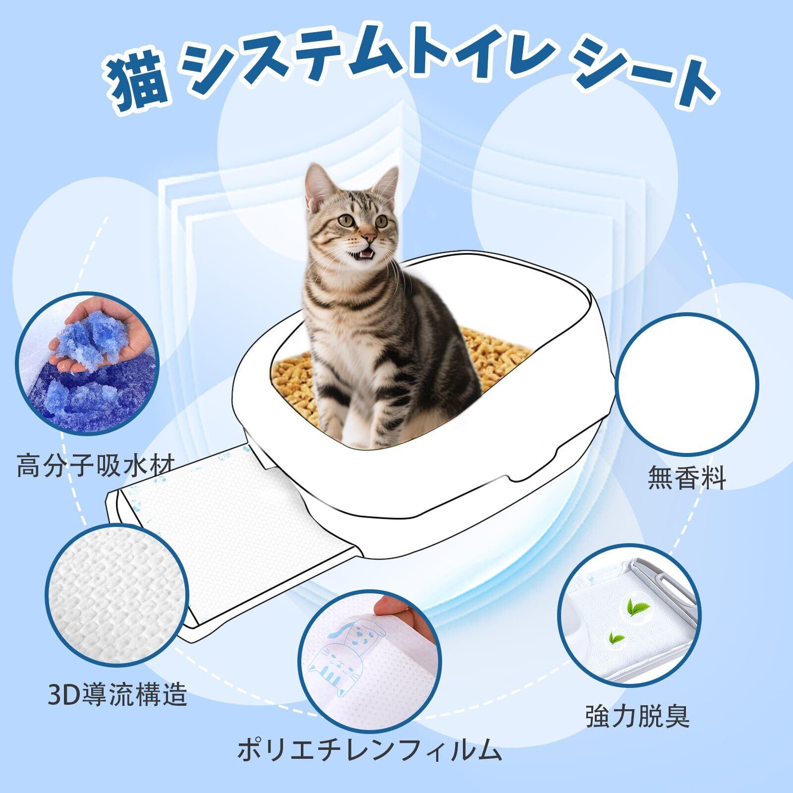 消臭シート: 猫トイレシートは独自の 3D導流構造を採用しており、液体の拡散と吸収を促進します、1週間におわない強力な脱臭効果を実現、お部屋の空気を清潔に保ちます。