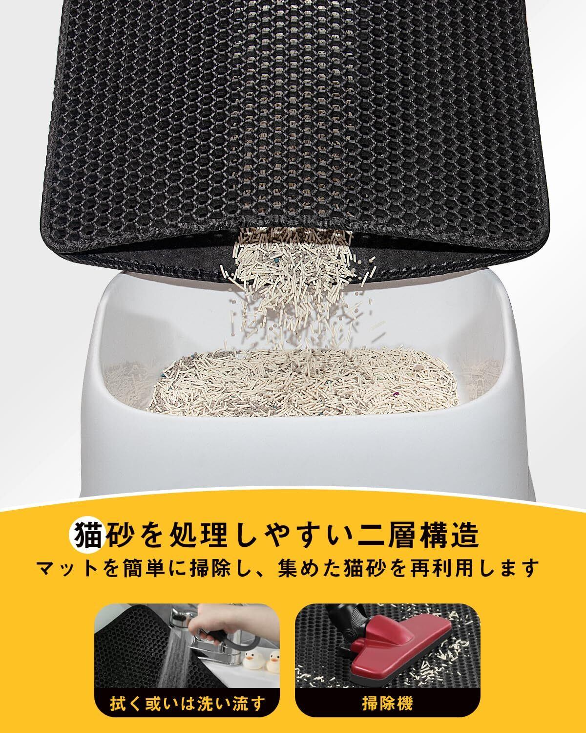 【猫砂拾い集め用の特大マット】:大型の猫或いは複数のペットを飼っているでも、たくさんの猫砂拾いには特大マットが必要です。特大サイズの猫砂マットは猫トイレの入口周りをカバーしやすくなり、例えば、インテリジェントな猫トイレ、または二つの普通な猫トイレの周りです。床に猫砂を集め、あちこちに散らかることはなくなり、非常に便利です。