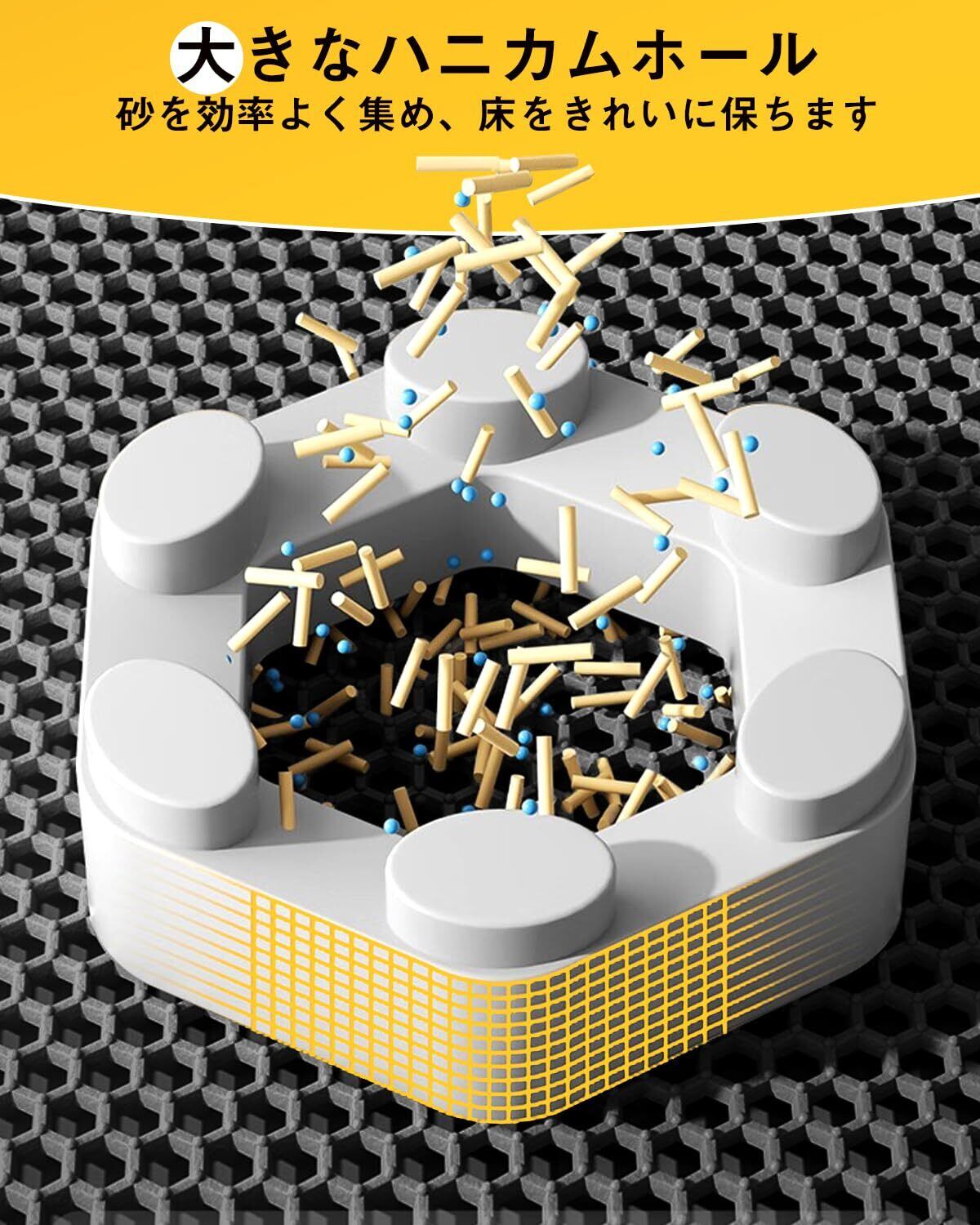 【防水や尿の浸透防止】: 二重のハニカムデザインで、散らかった猫砂はハニカムようなブラックホールを通って下の層に落ちやすくなります。底のEVA層は防水で、尿の浸透も防止でき、水と尿汚れからあなたの床とカーペットを心配する必要はありません。