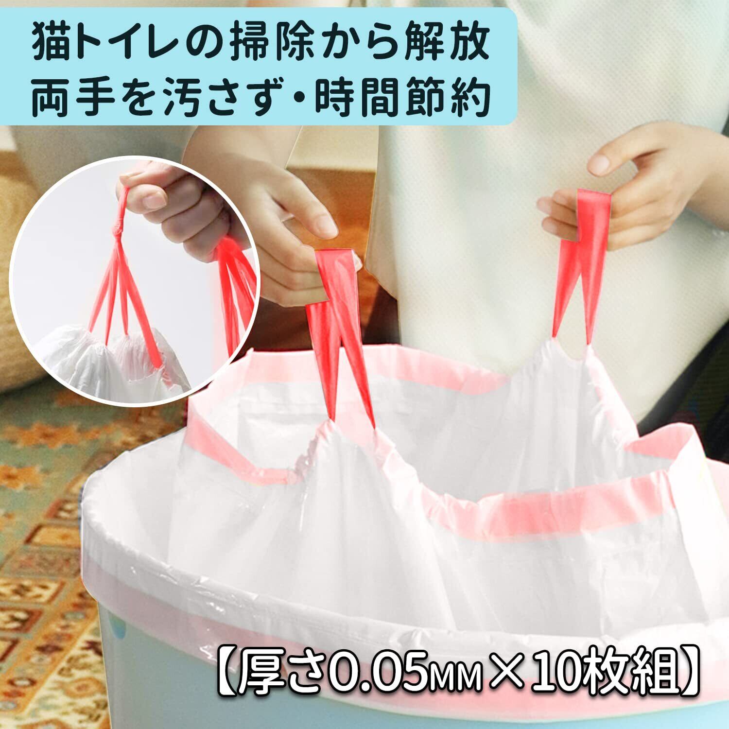 猫トイレ袋 猫砂袋 厚さ0.05mm ねこトイレ用ゴミ袋 猫砂処理 猫トイレを汚れず 猫用うんち処理袋 猫用うんちゴミ袋 ネコちゃんのトイレ袋 片付け簡単 時間節約 丈夫 使い捨て 砂取り かせるタイプ ネコトイレ用品 10枚組 L