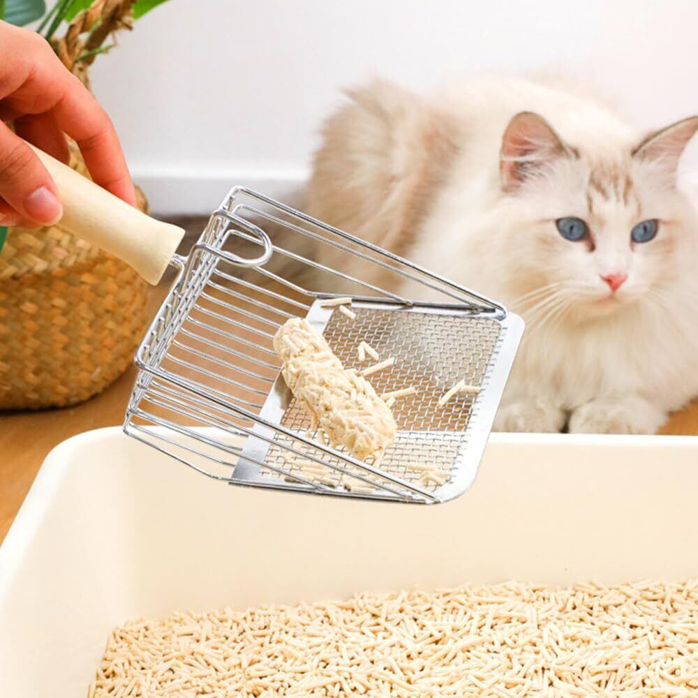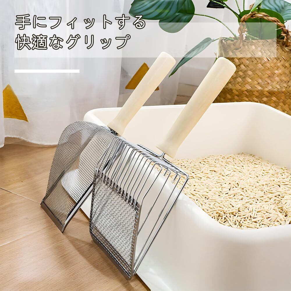 猫砂スクープ ステンレス鋼素材 メッシュ猫砂スクープ 超耐久性猫トイレスクープ 大容量猫砂スクープ 簡単に掃除できる便利な掃除ツール フィットした手の形の滑り止めハンドル 必須の猫砂掃除用品 猫愛好家に最適