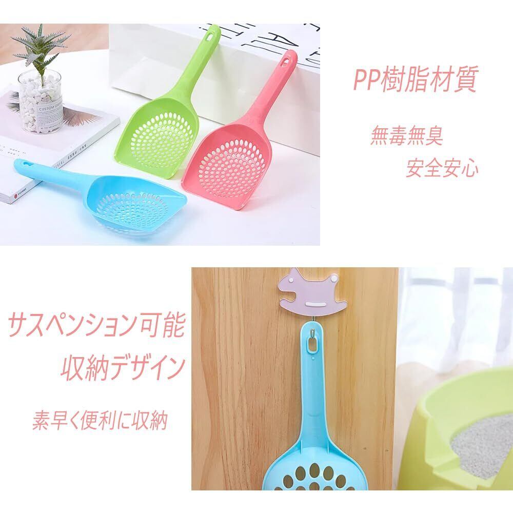 【セット内容・素材】ペット用猫砂スプーン2個(ピンク+青)、はPP材料で作られ、PP材料は安全、無毒、軽量で、環境保護材料である。耐熱性に優れており、猫砂スプーンを日光の下で長時間ベランダに置いても、正しく使えない心配はありません。