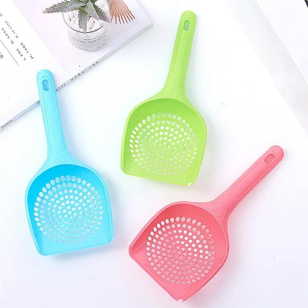 【透かし彫り設計】この猫砂スプーンは底に穴が開いた骨組み設計を採用し、軽く揺らすだけで一度にブロックされていない猫砂を濾過することができ、追加の動作を必要とせず、猫砂の無駄を取り除くことができる。