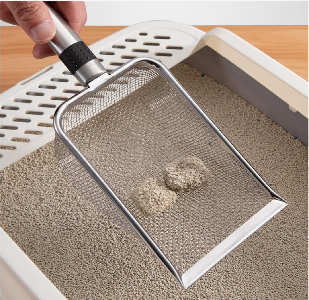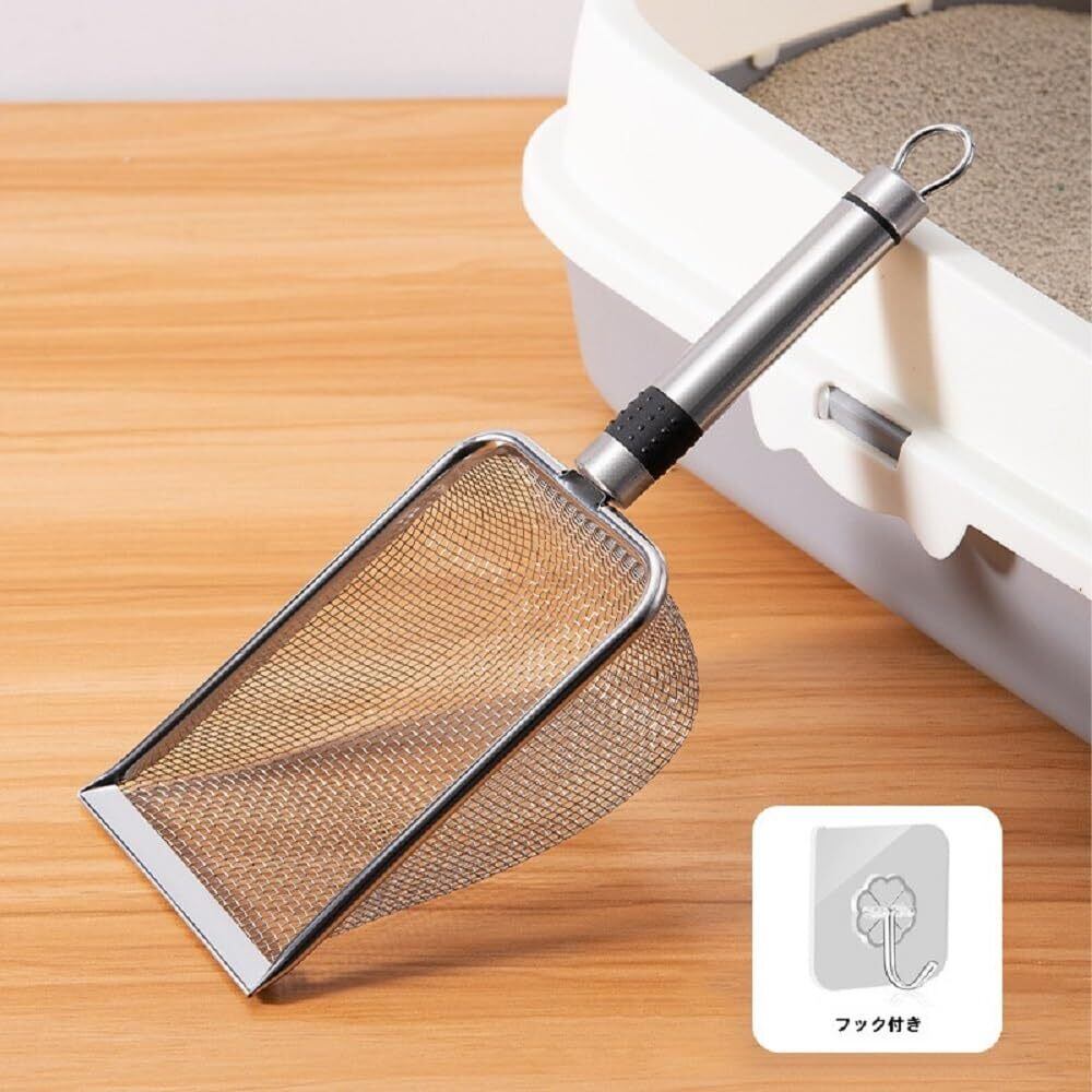 ステンレス製 猫砂スコップ 合金製 丈夫 長持ち 細かい砂用 すのこ付き 猫トイレ掃除