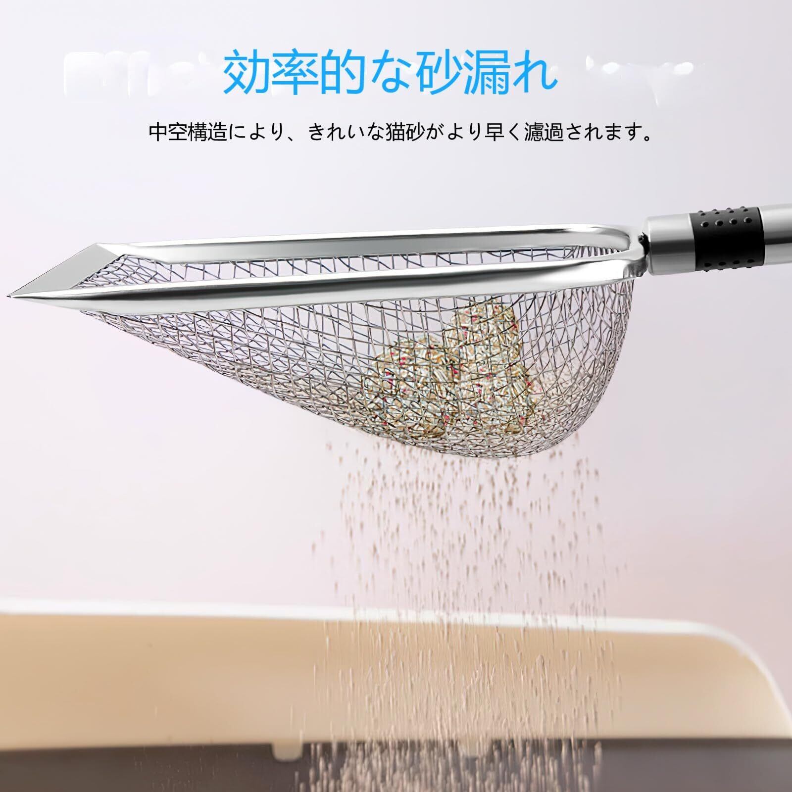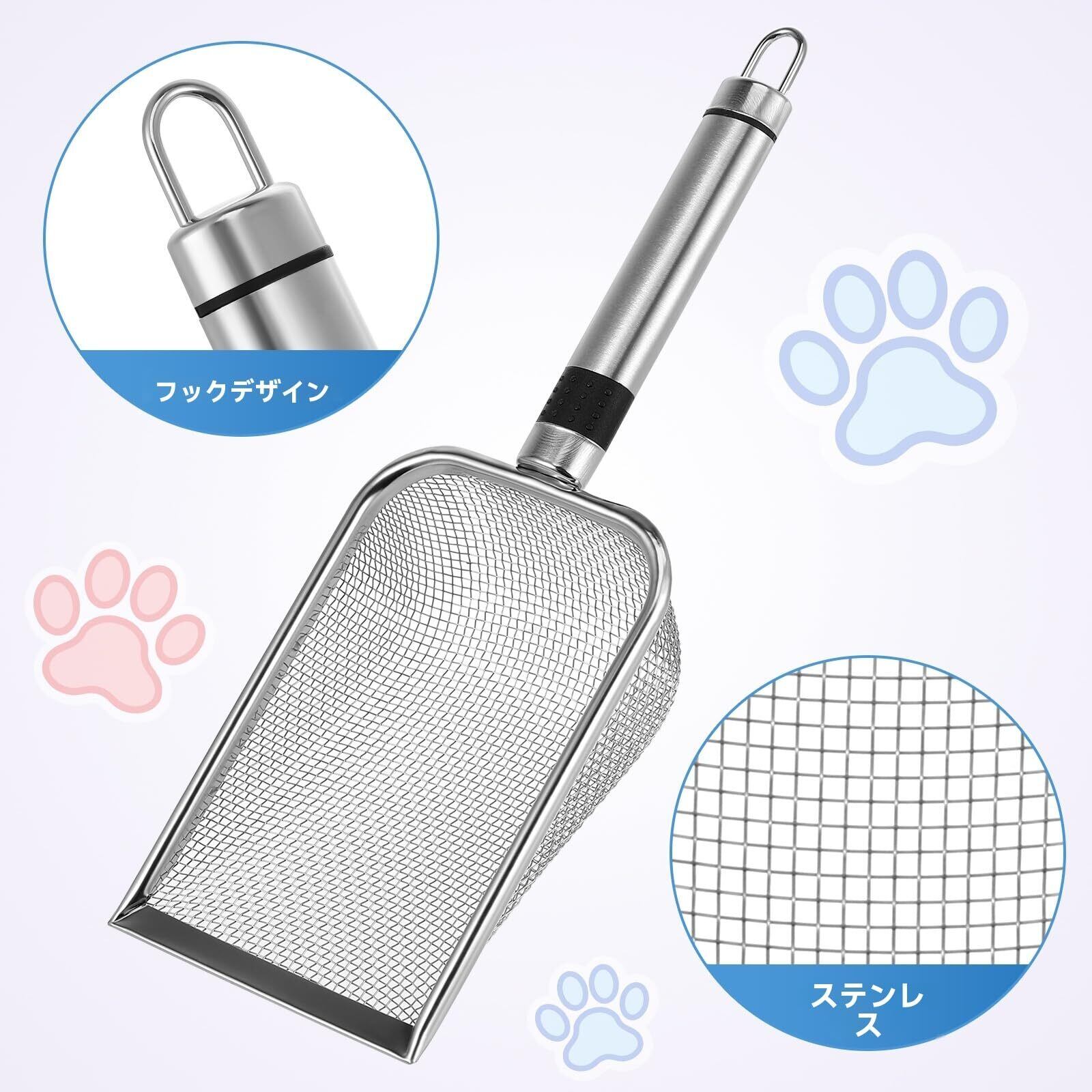 Milisten 猫砂スコップ 金属製 11.4インチ 長柄 猫トイレ用 2Mmメッシュ細かい砂取りスコップ 猫砂掃除用品 ペット用リッタースクープ 軽量耐摩耗