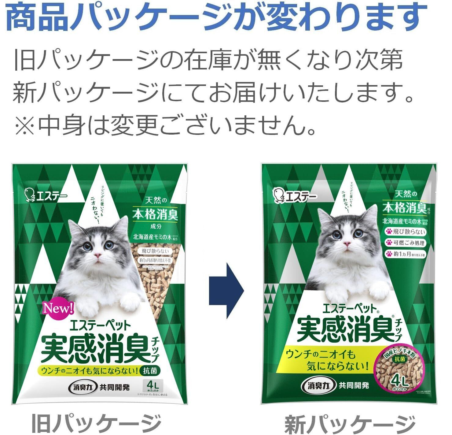 エステーペット 猫用 実感消臭 チップ 4L [システムトイレ 各社に使える] [消臭力]共同開発 猫 トイレ 猫砂 日本製