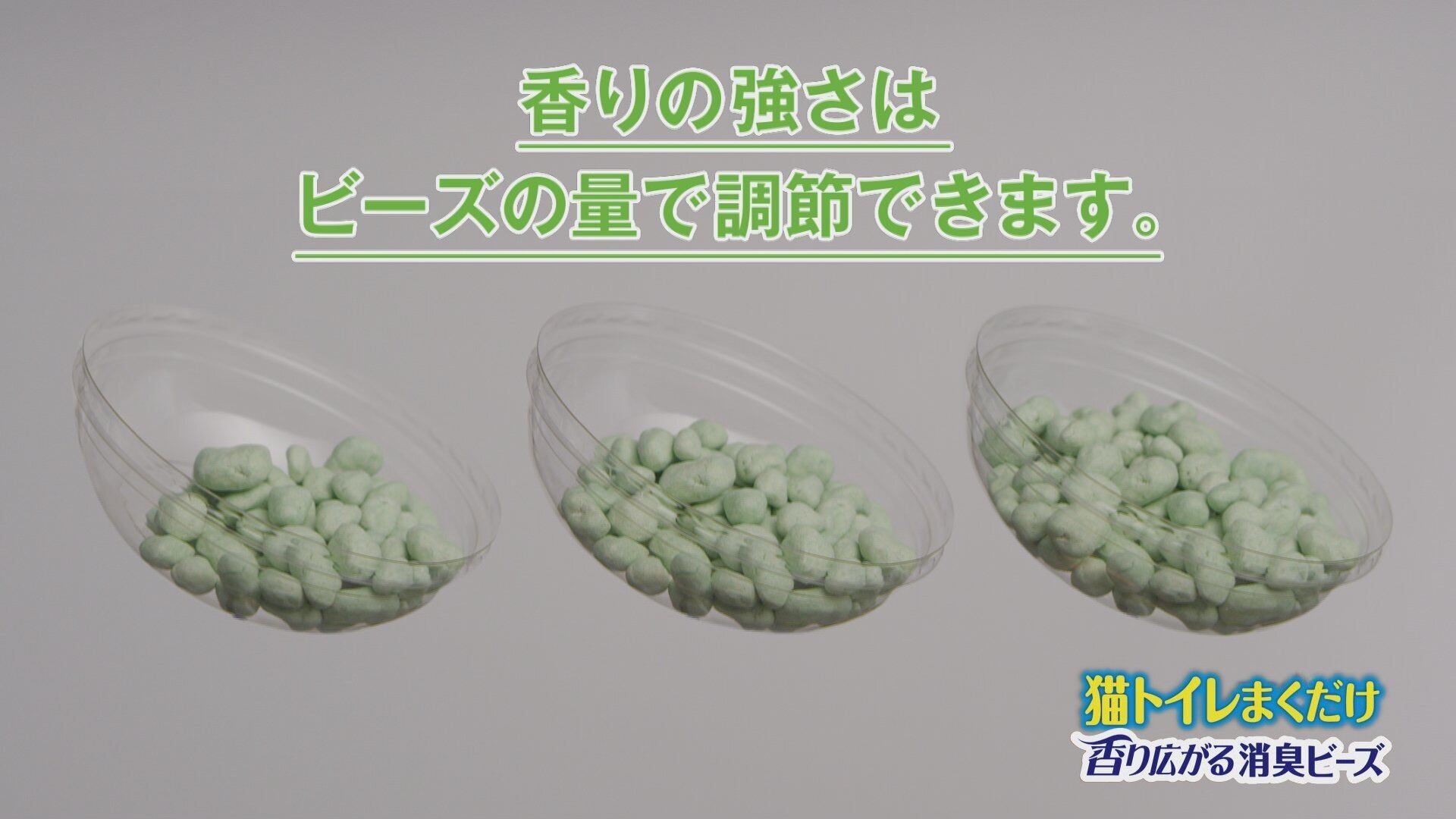 今お使いの猫トイレにまくだけで、消臭ビーズがオシッコやウンチの嫌なニオイをしっかり消臭し、香りが広がります。お好みの香りの強さに、ビーズをまく量で調節できます。色々なタイプの猫砂・システムトイレに使用できます※「トイレに流せる」タイプの砂は除く