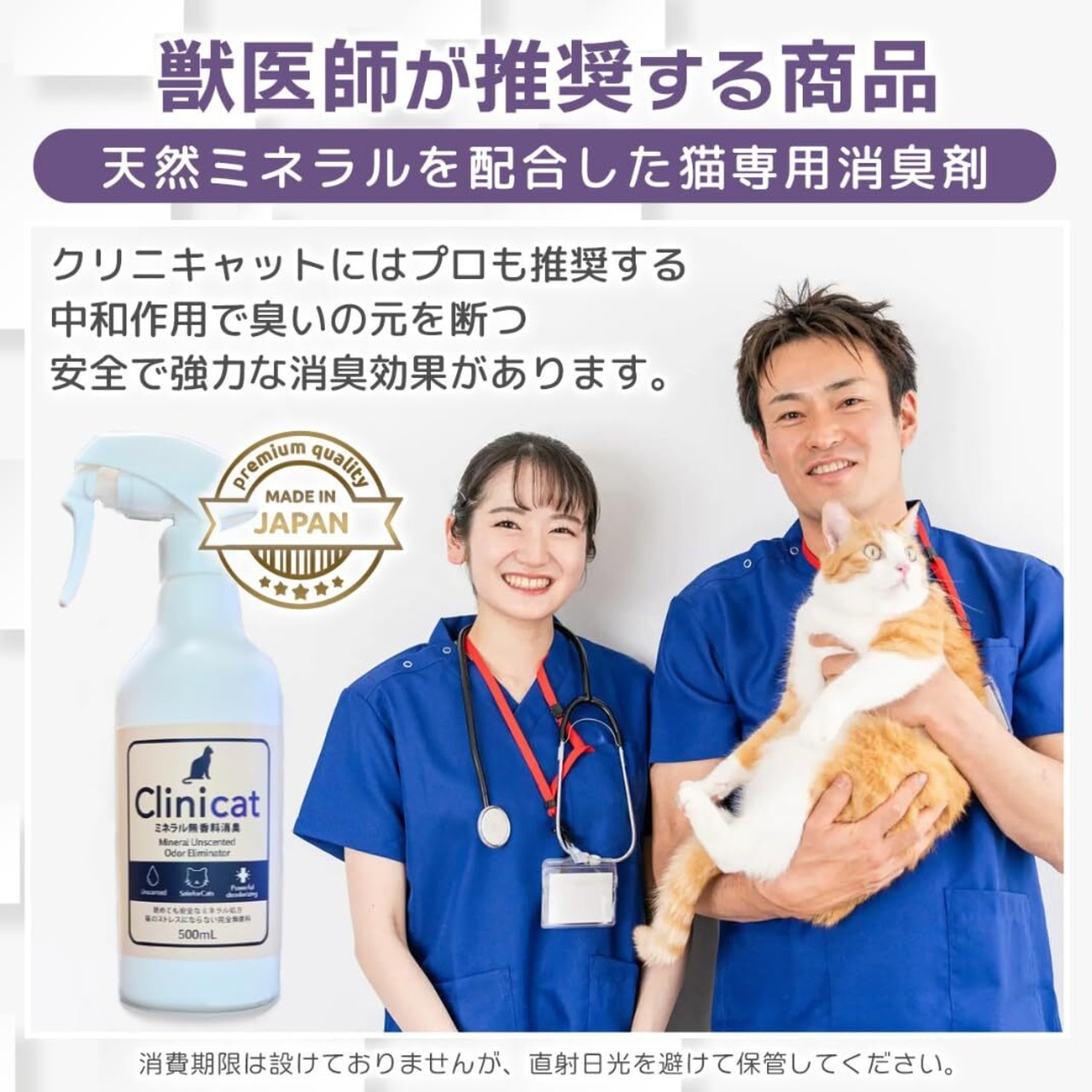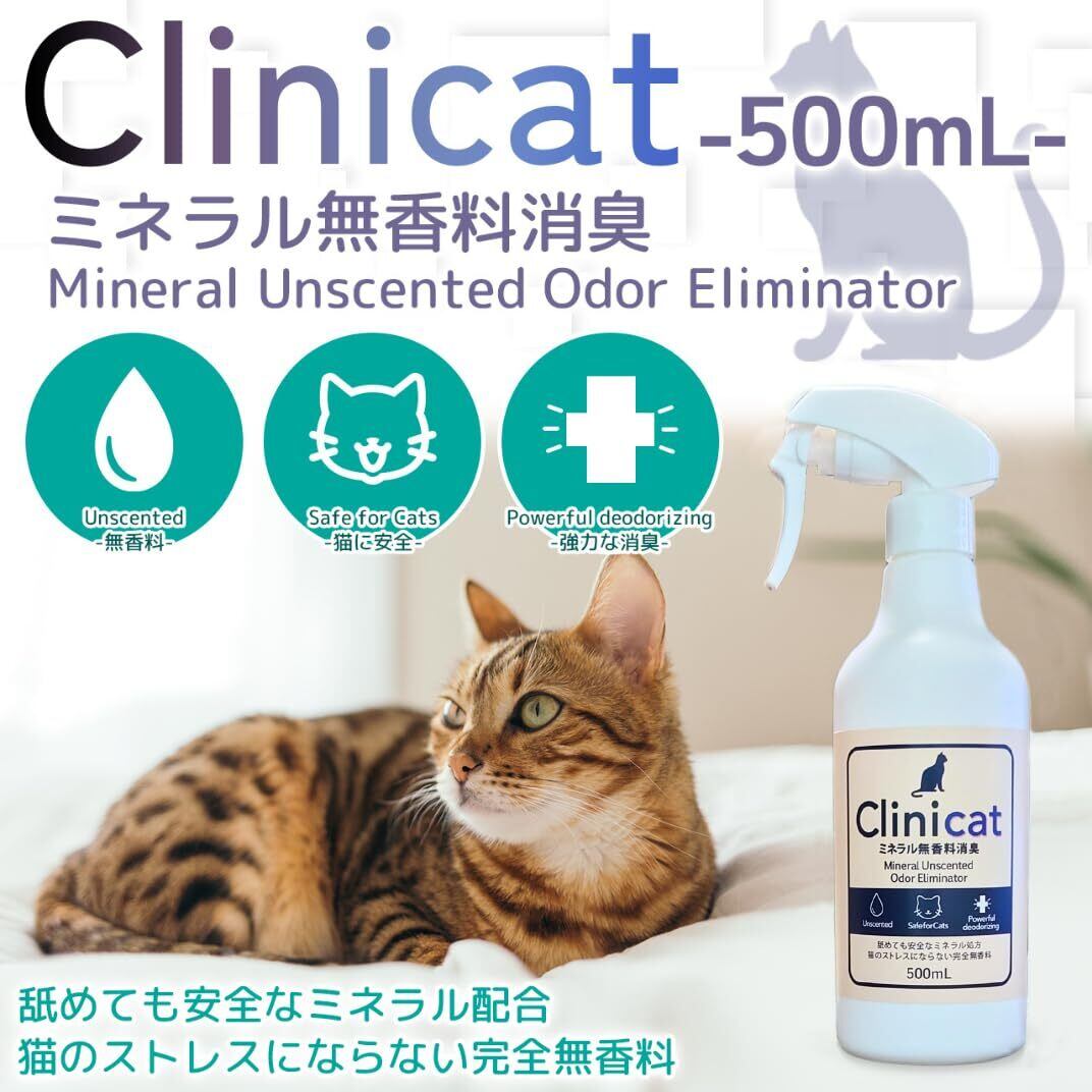 Clinicat 舐めても安心 安全 猫専用 消臭剤 猫 消臭スプレー 獣医師が使う 完全無香料 クリニキャット (500ml)