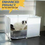 特大サイズで猫砂飛び散り防止: 長さ60cm× 幅52cm× 高さ40cm。猫用トイレに最適なペットガード付き囲いタイプで、猫砂の飛び散りを効果的にガードします。子猫用トイレやシニア猫用低トイレにも対応可能。