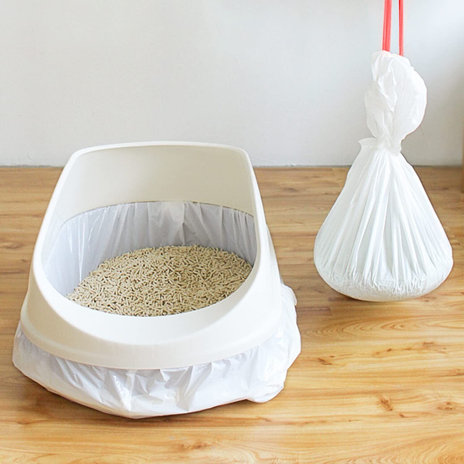 【手を汚さず・猫砂の交換が楽々に】猫砂袋を使用すれば、両側の紐を引張て結べるだけ、猫砂を一気に持ち上げ、丸ごと捨てることができます。今まで砂を取り出すことがもういりません。手を汚さず、きれいに猫砂を楽々交換できます。