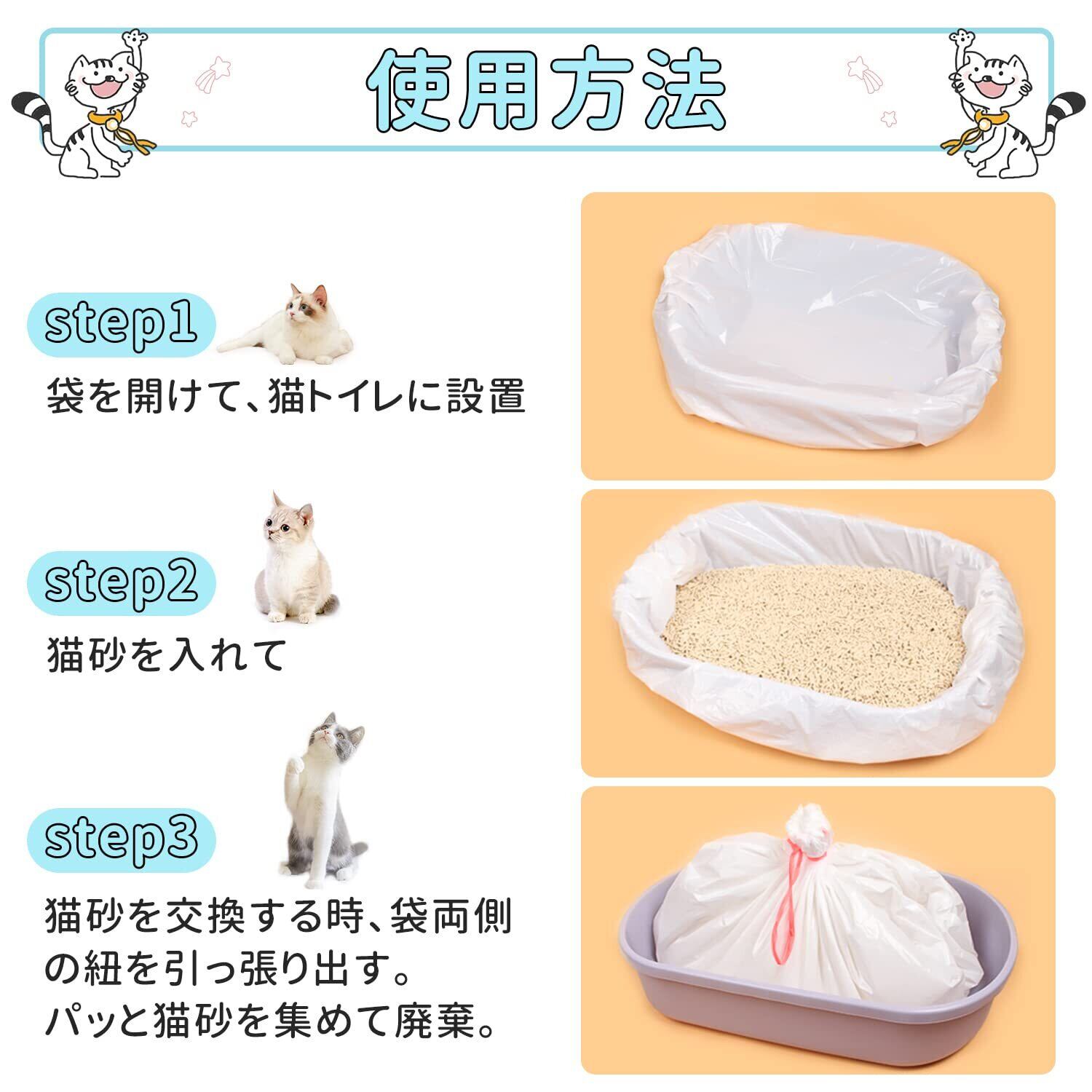 【時間節約・ペットと快適に暮らし】猫用トイレ袋で飼い主が一番嫌がるこびり付きがなくなります。猫砂袋を取替るだけで、猫トイレを掃除完了。これから洗浄消毒する時間を節約して、愛猫と思い存分遊びましょう。