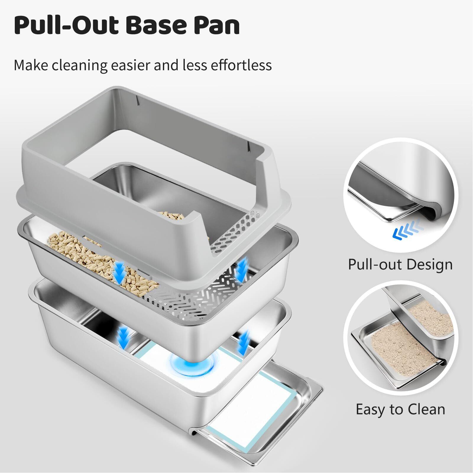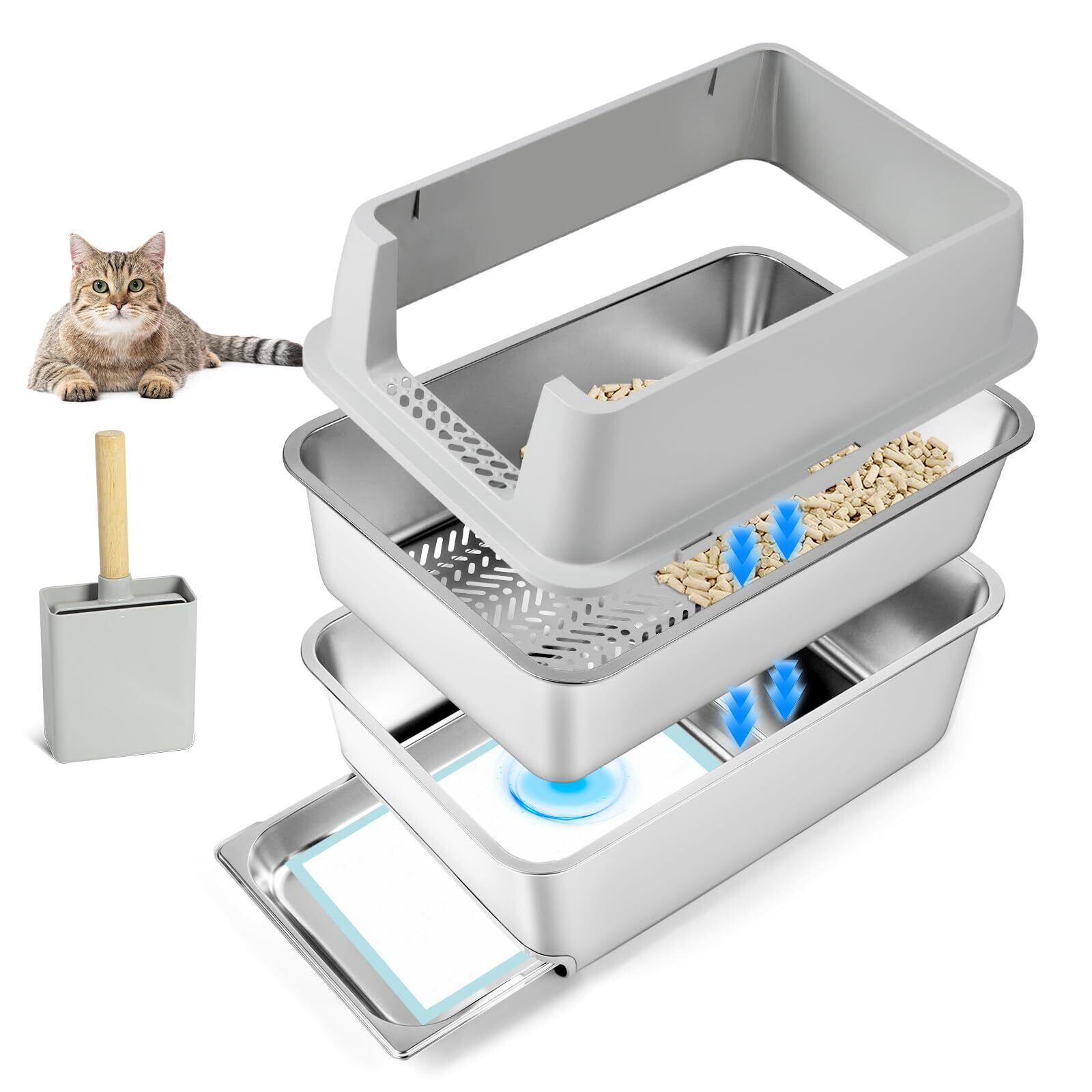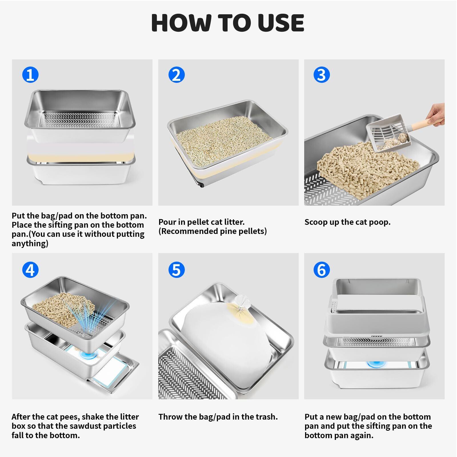 無臭&効率的なクリーニング: この猫トイレは高品質のステンレス鋼で作られており、不快な臭いを吸収することはありません、それは、滑らかな防錆、ノンスティック表面を持っており、それをより簡単かつ迅速にきれいにする
