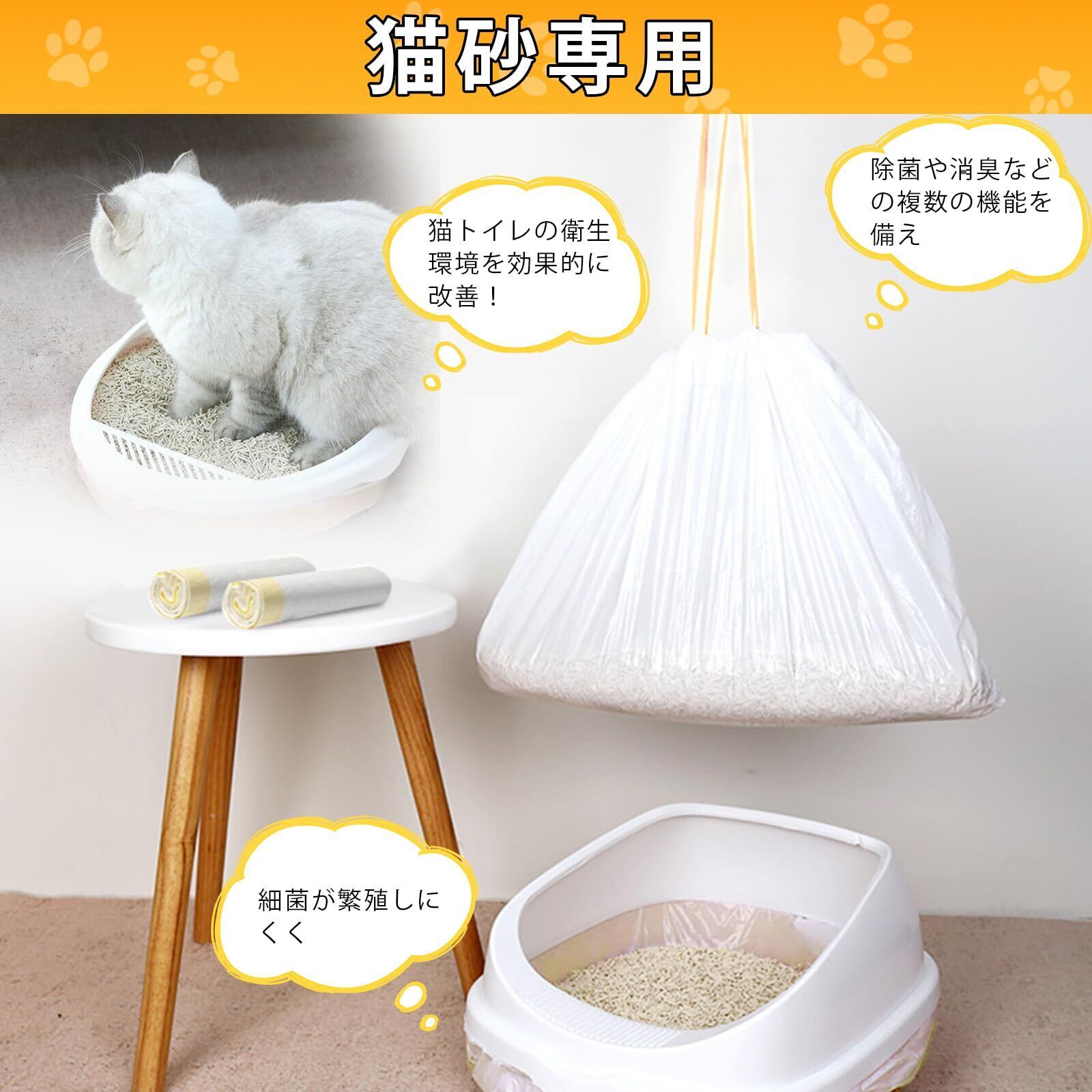 【抗菌&防臭&!猫砂専用!】猫砂専用!LEZZYRUCK 猫トイレ用ゴミ袋は高品質のポリエチレン+ナイロン原材料を使用しており、臭いや下痢の原因となる細菌が繁殖しにくく、猫トイレの衛生環境を効果的に改善します。従来の猫砂のかき出しは、糞便の悪臭に耐える必要があるだけでなく、多くの細菌が含まれる手作業で行う必要があります。それに対し、LEZZYRUCK 猫砂処理袋は除菌や消臭などの複数の機能を備えているため、猫のトイレ内での細菌の繁殖を心配する必要はありません。