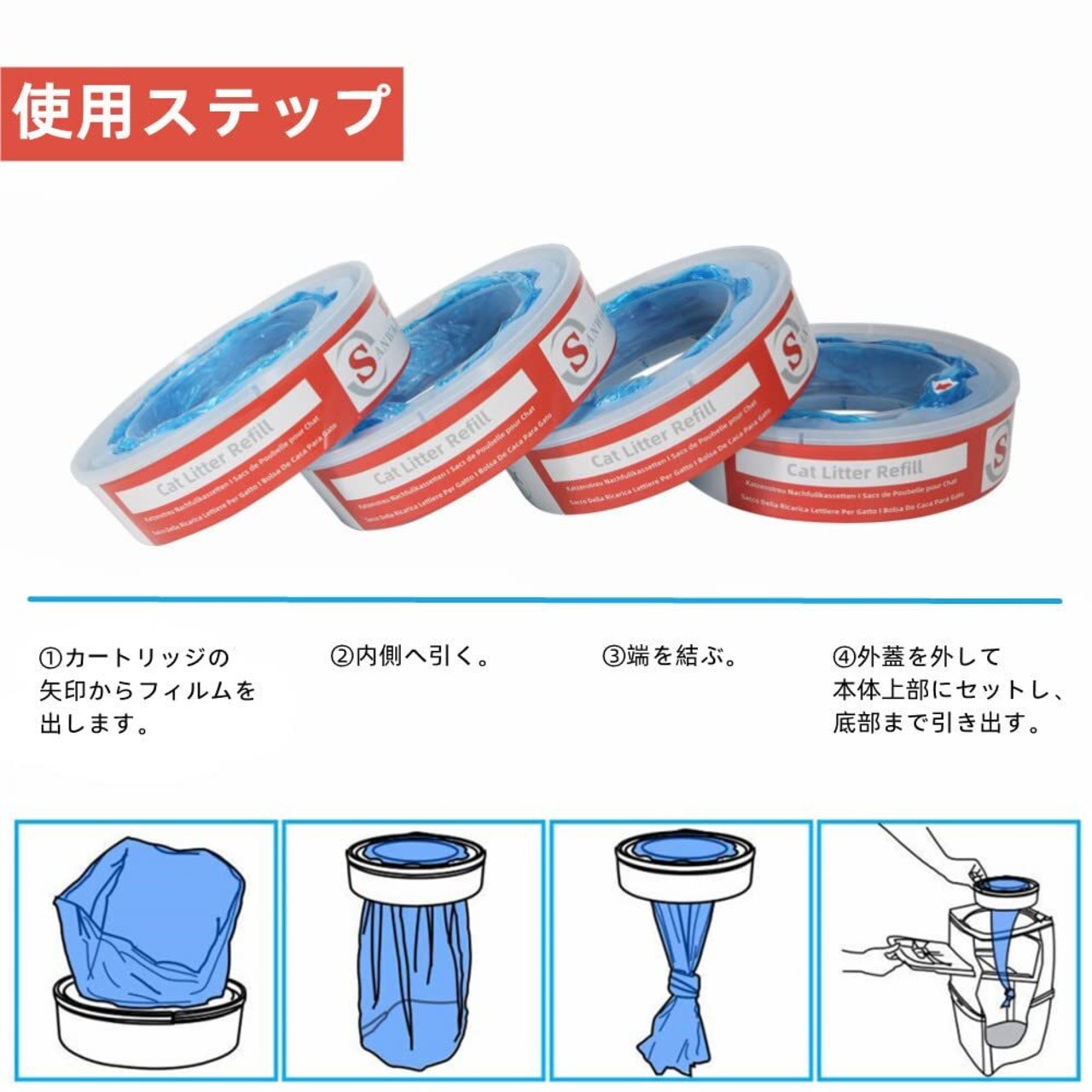【三和商事株式会社のフィルム】他の入手可能なフィルムよりも引き裂きに強く、各詰め替えカートリッジは60個の食料品袋を節約します。