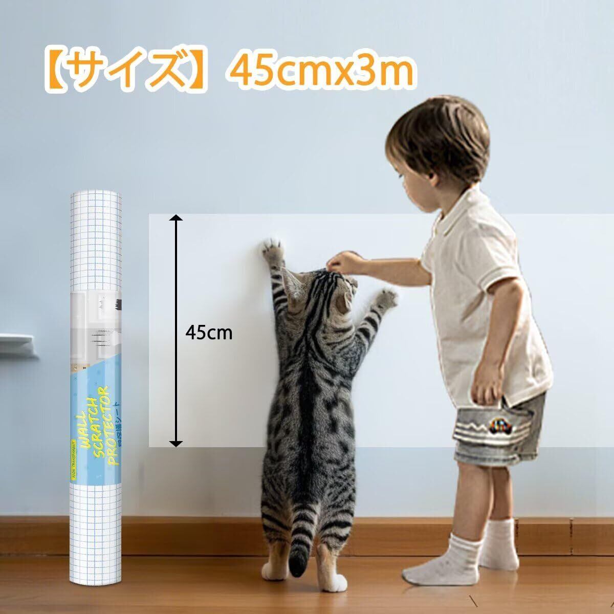 CORKAS 猫 壁紙保護シート つめとぎ 防止 シート 半透明 賃貸OK ペット爪研ぎ防止 壁保護シートはがせる 壁 家具 柱 机 ドア 傷 防水防汚 汚れ防止 落書き対策 壁 保護 貼りやすい ねこ しつけ用品 (45cm×3m)