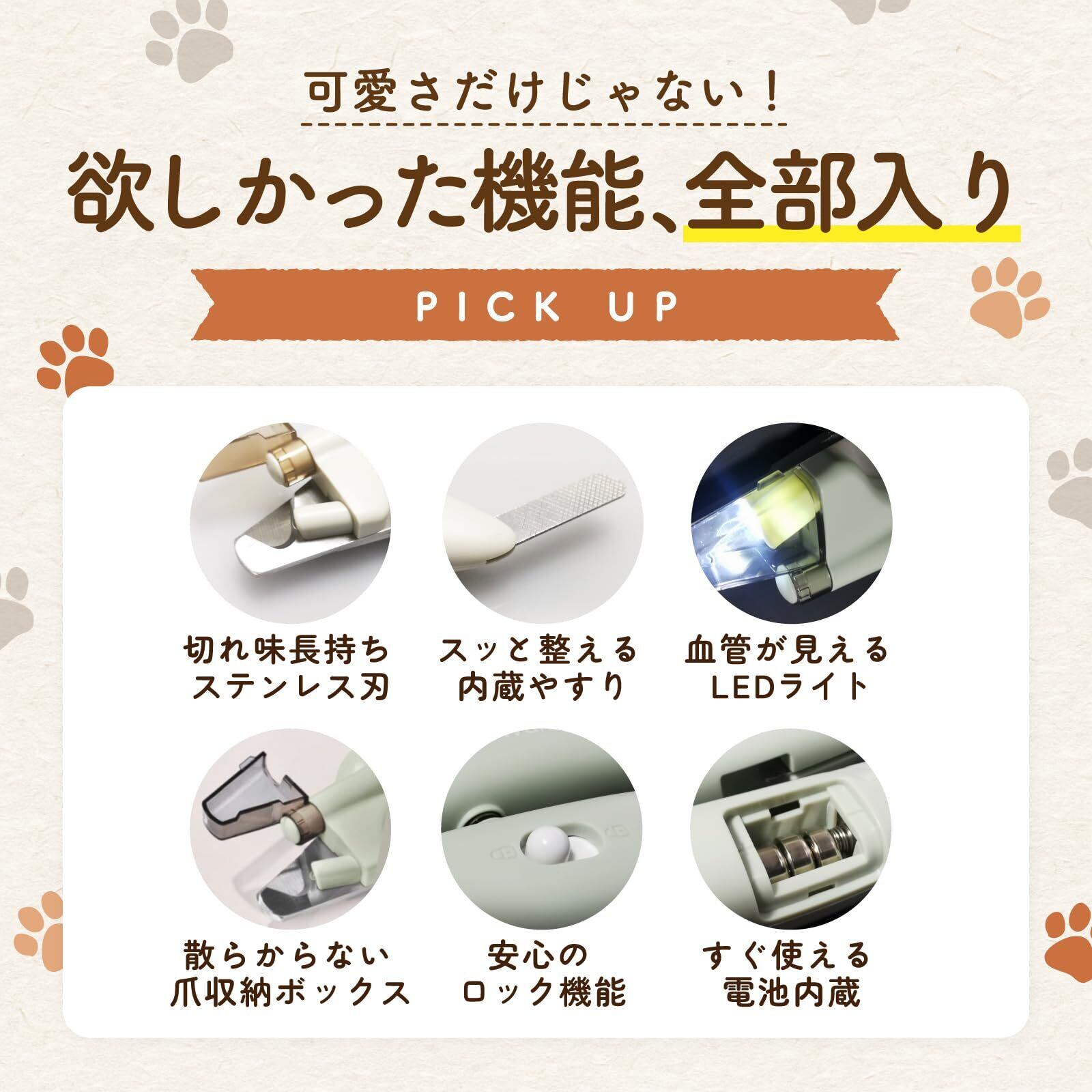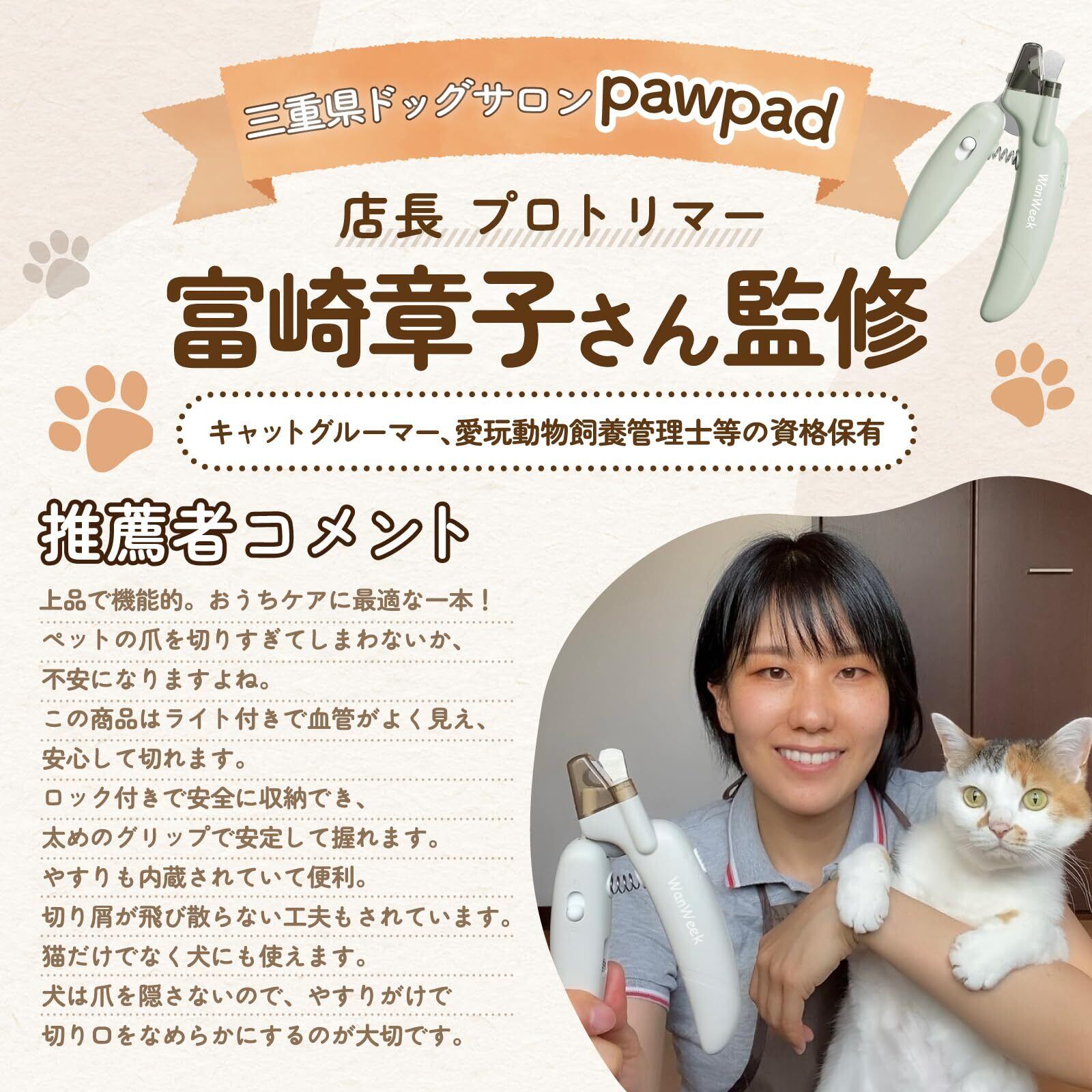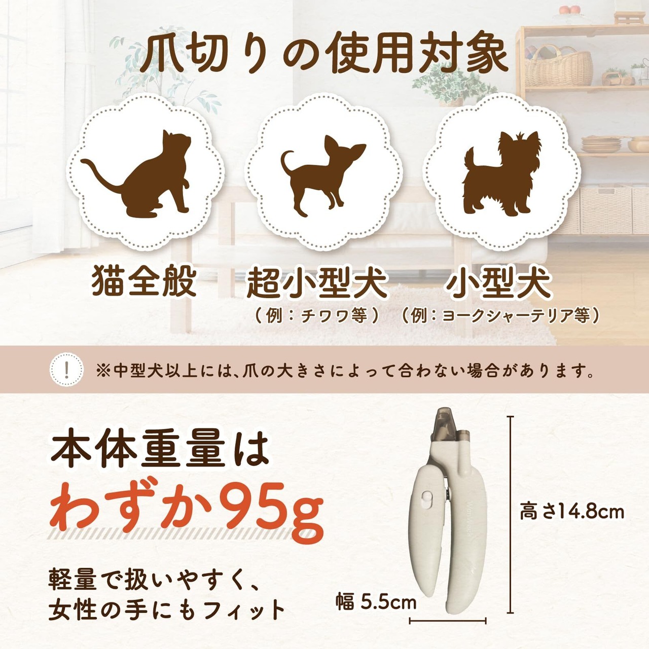 【ねこのきもち掲載モデル】WanWeek 猫・犬用爪切り トリマー監修 LEDライト 飛散防止カバー ステンレス刃 ヤスリ内蔵 安全ロック 深爪防止 猫 爪切り 猫のつめきり 超小型犬~小型犬 つめきり 初心者向け ギフト対応 おしゃれ (エクリュ)