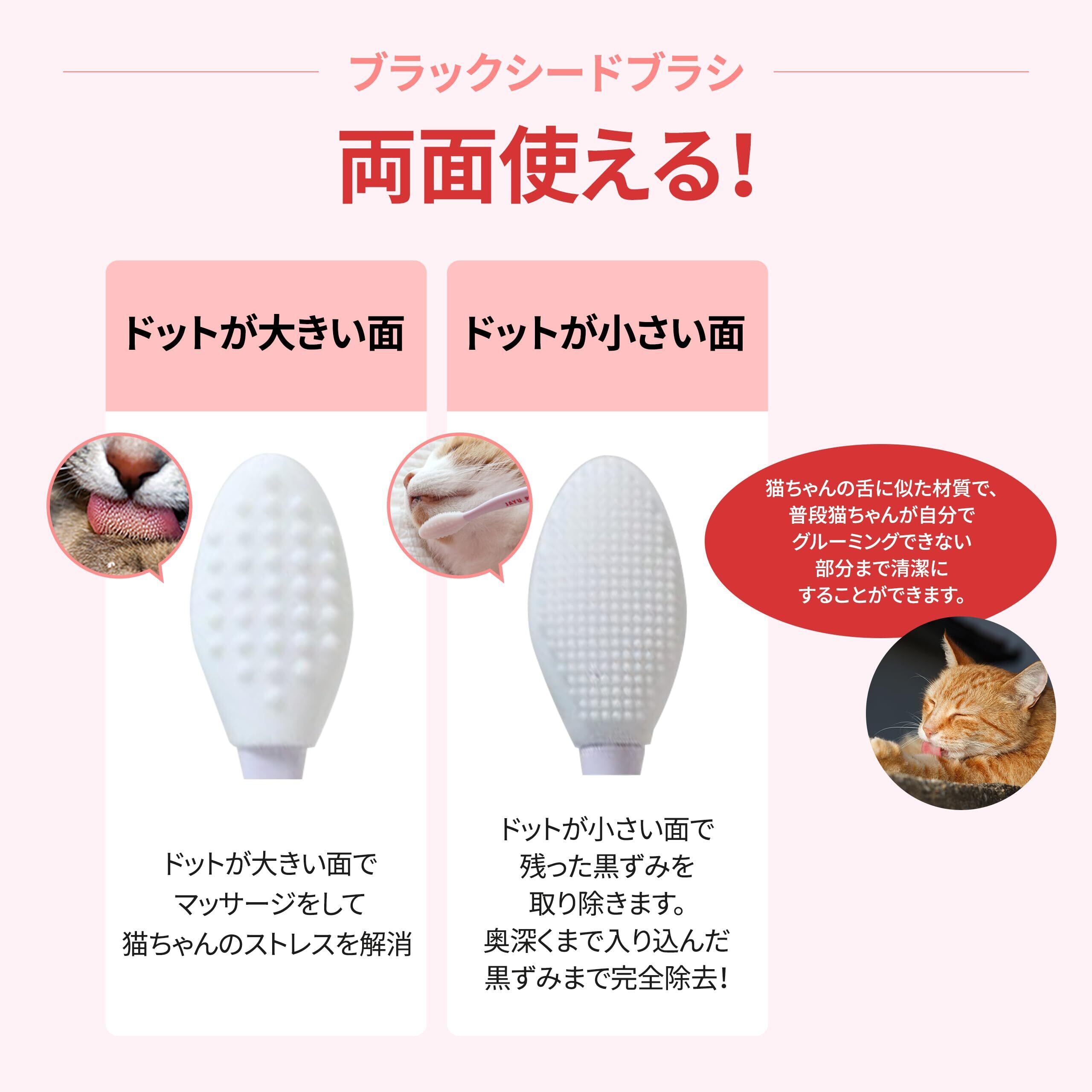 JAYU PET ブラックシードブラシ - 猫ニキビ あご下ニキビケア、猫ニキビ、猫のあごニキビ&ブラックヘッド(黒ずみ)除去用シリコンブラシ、両面猫グルーミングブラシ (単品, 1ea)