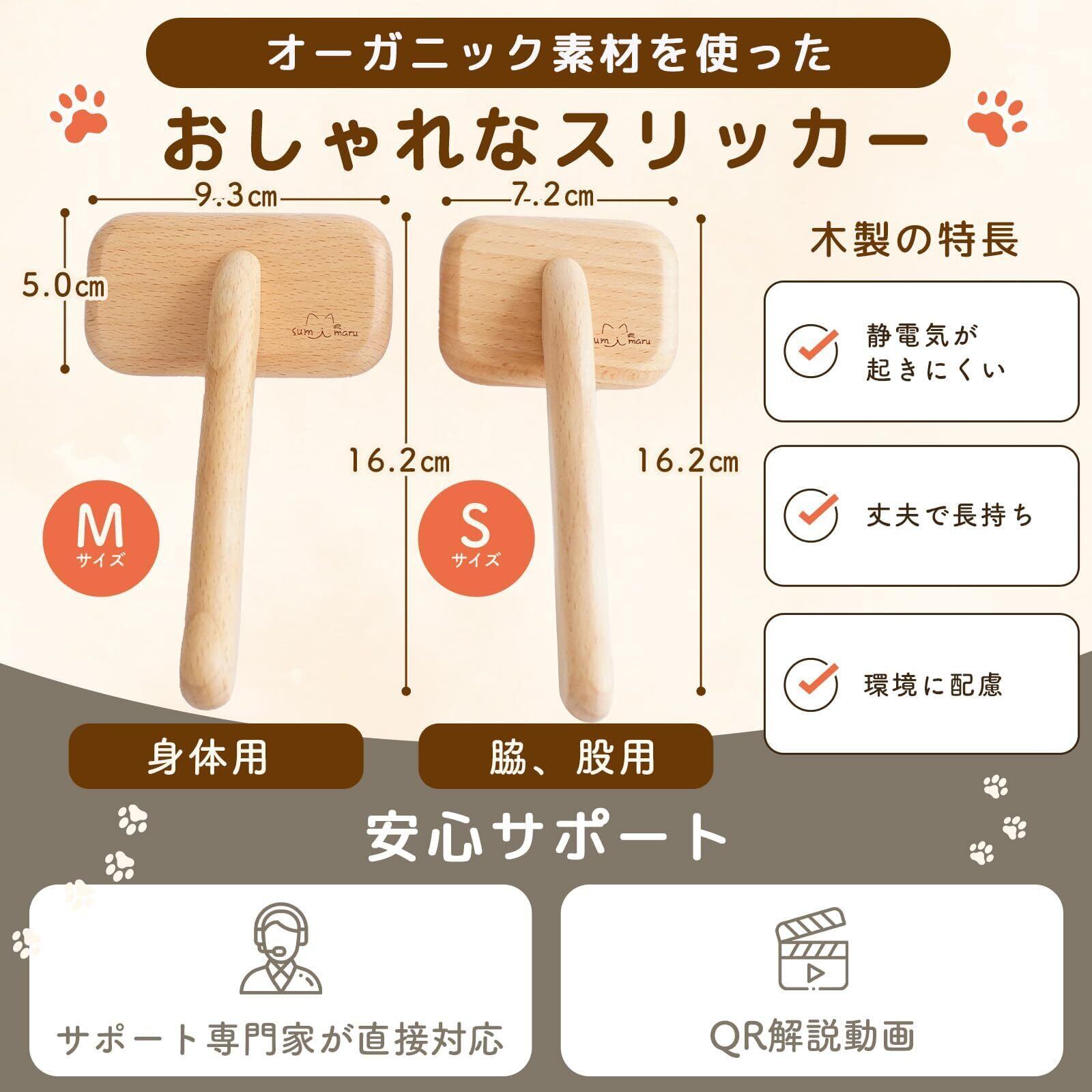 猫 ブラシ【トリマー監修】 解説動画 説明書付【 傷つけない】【しっかりとかせる】 高級 オーガニック素材 スリッカーブラシ 長毛 短毛おしゃれ かわいい 猫用品 犬用品 (Sサイズ 顔、脇、股用)
