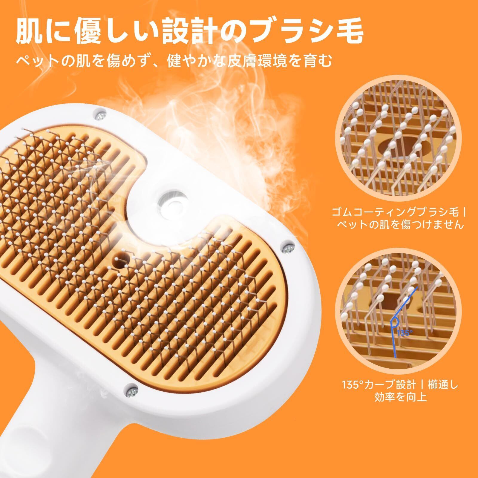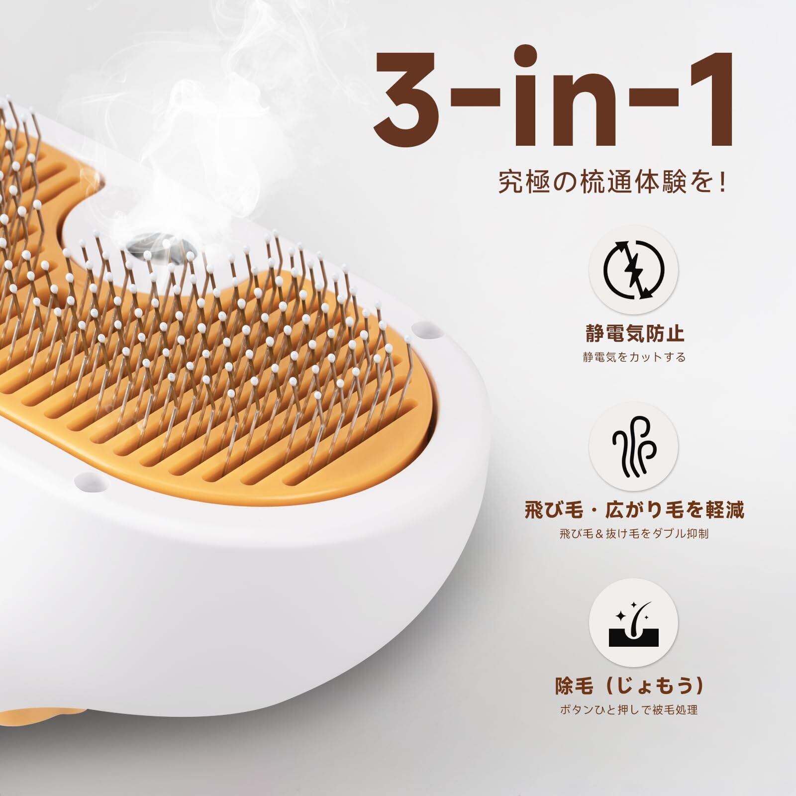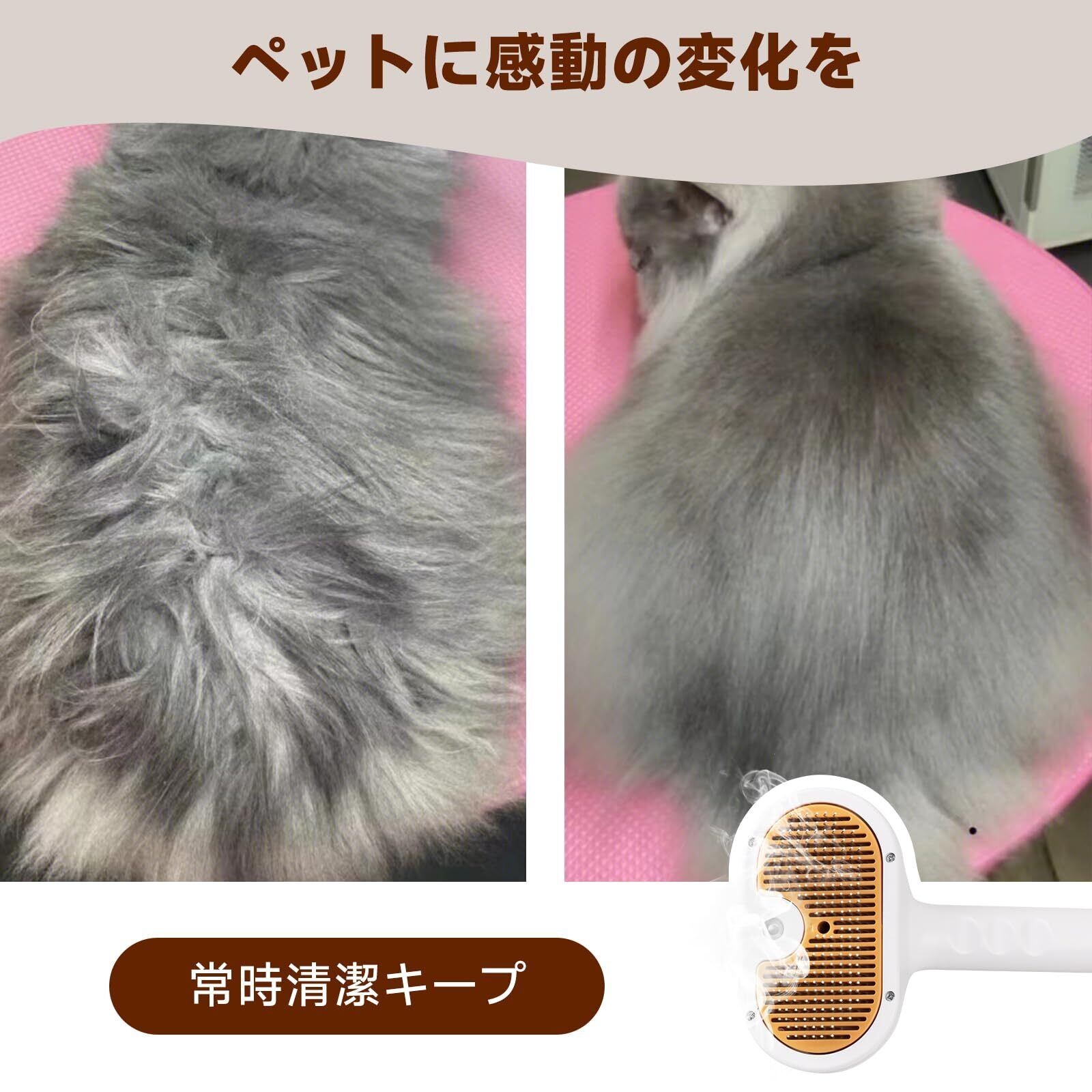 猫 ブラシ スチーム|スチームブラシ&ミストブラシ|ワンプッシュ式 3-in-1 ペット用グルーミングブラシ|USB充電式|静電気防止 マッサージ スリッカーブラシ|犬猫兼用 短毛・長毛対応|肌に優しい設計|洗い流し不要の美容液付き
