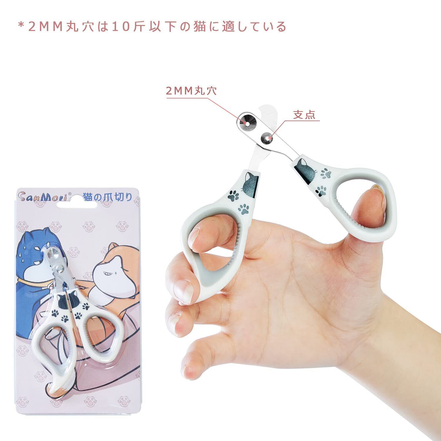 【正規品】SanMori 猫 爪切り ステンレス製 歯ぐきタイプ 軽量 コンパクト 使いやすい ストレスなくスパッと 切れる 【猫専用 爪切り 初心者用】安全安心 (2mm丸穴)