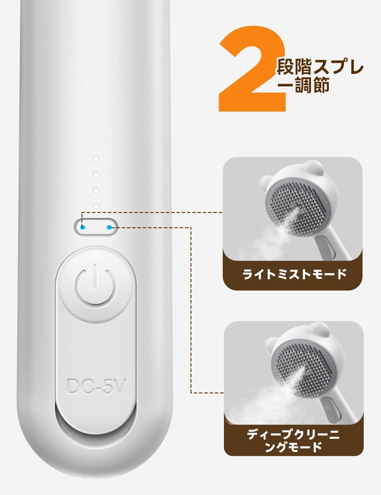 2段階調節可能なスプレー:この猫用スチームブラシは2段階のスプレー調節ができ、ペットのニーズに応じてスチームの強さを選べます。 後部のタンクには水やアロマテラピーを入れることができ、スチームは均一で繊細、静電気防止、毛の飛び散りが少なく、ペットに優れたケアをもたらします。 スチーム穴は中央にあり、より均一な予備保湿とスムーズなグルーミングを実現します。