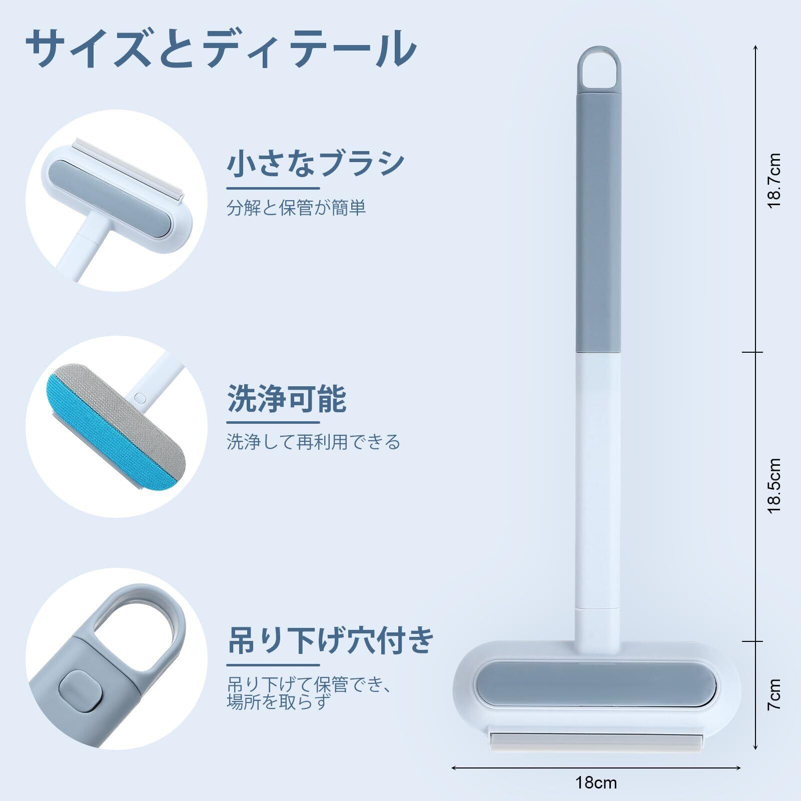 【サイズ】猫用ブラシの全長は44.2cm、ブラシヘッドは18cm、ブラシヘッドの幅は7cmです。ブラシは小さくて軽く、使い心地も良く、スマホをいじりながらでも片手で操作できます。ペットの飼い主にとって、いつでも手軽に掃除できます