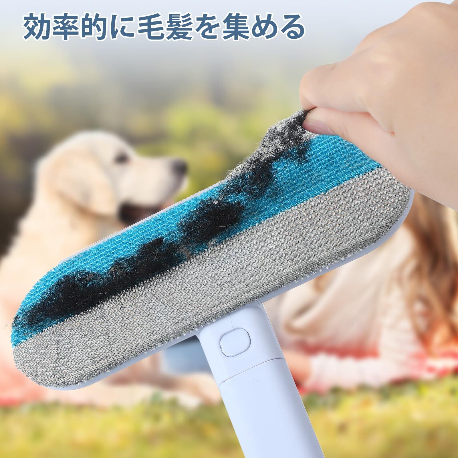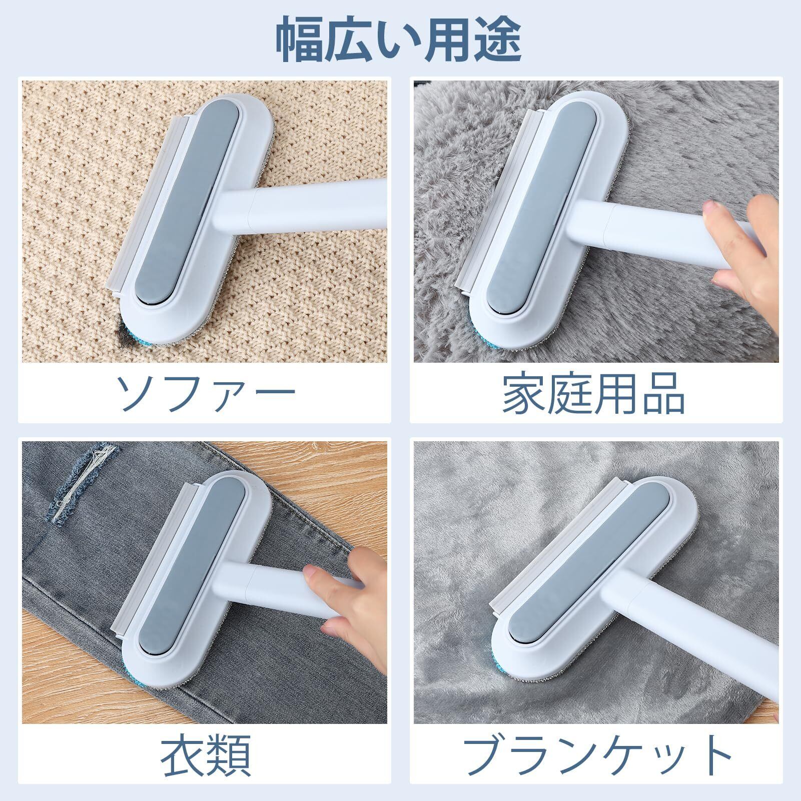 【猫の毛処理】ソファ、カーペット、ベッド、キルトなど、家中のあらゆる場所の猫の毛を掃除できます。握ったり、押したり、引っ張ったりすることで、見つけにくい猫の毛もブラシに付着し、効果的な清掃と衛生を保ちます。濡れた状態でも乾いた状態でも使えて、ご自宅の状況に合わせてお選びいただけます