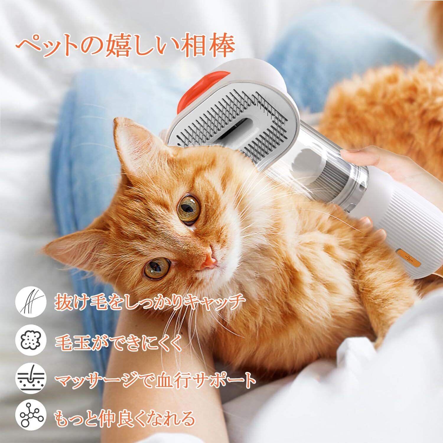 【4in1多機能】電動猫ブラシ 猫ブラシ【絡まり毛用/整髪用/トリートメント用/掃除対応】ペット用ブラシ 抜け毛除去簡単 静電防止 換毛期対策 犬 猫美容 USB充電式 800mAhバッテリー ペット用 犬猫通用 短毛 長毛 皮膚に優しい