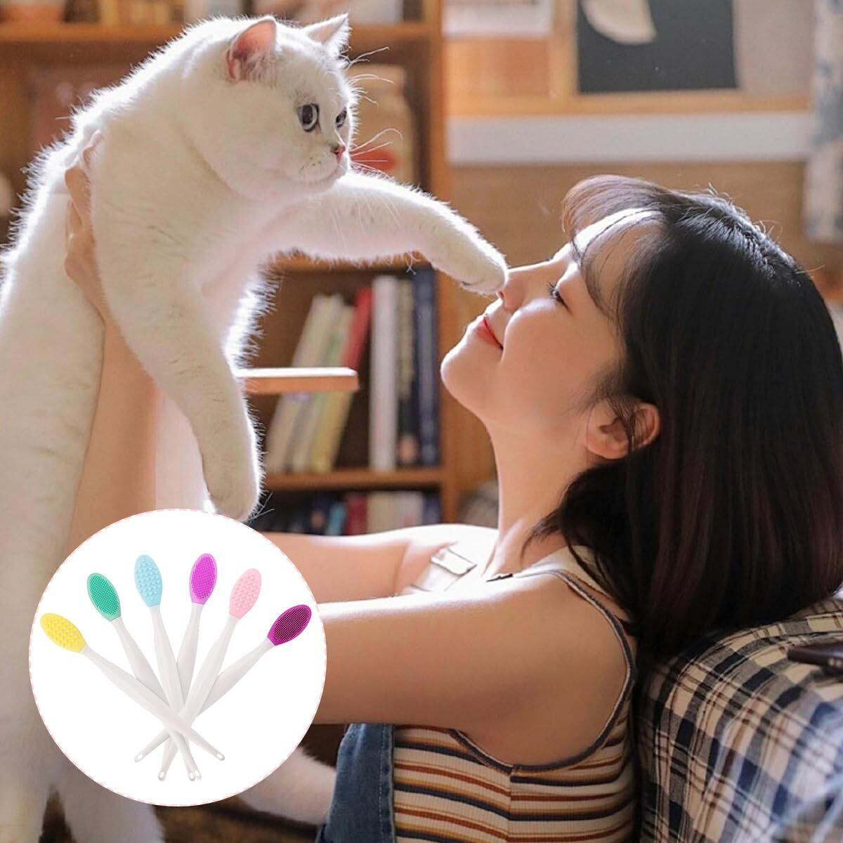 DONGFANGB 猫 ブラシ 6個セット 猫 ラバーブラシ 猫あご汚れたあご掃除ブラシ 猫 両面クリーニングブラシ 猫美容ブラシ 柔軟シリコン 角質除去両面猫ブラシ 猫用ブラシ猫の黒ずみ除去