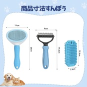 ① 【3点セット】犬猫兼用ペットブラシセット — 抜け毛取り・毛玉ケア・グルーミング対応 自動クリーニング式スリッカーブラシ、両面デマッティングコーム、シリコンブラシの 多機能3点セット。 犬猫の 抜け毛取り・毛玉取り・グルーミング・マッサージ をこれ1つで実現。 長毛・短毛のペットに幅広く対応し、毛並みをふんわり自然に整えます。