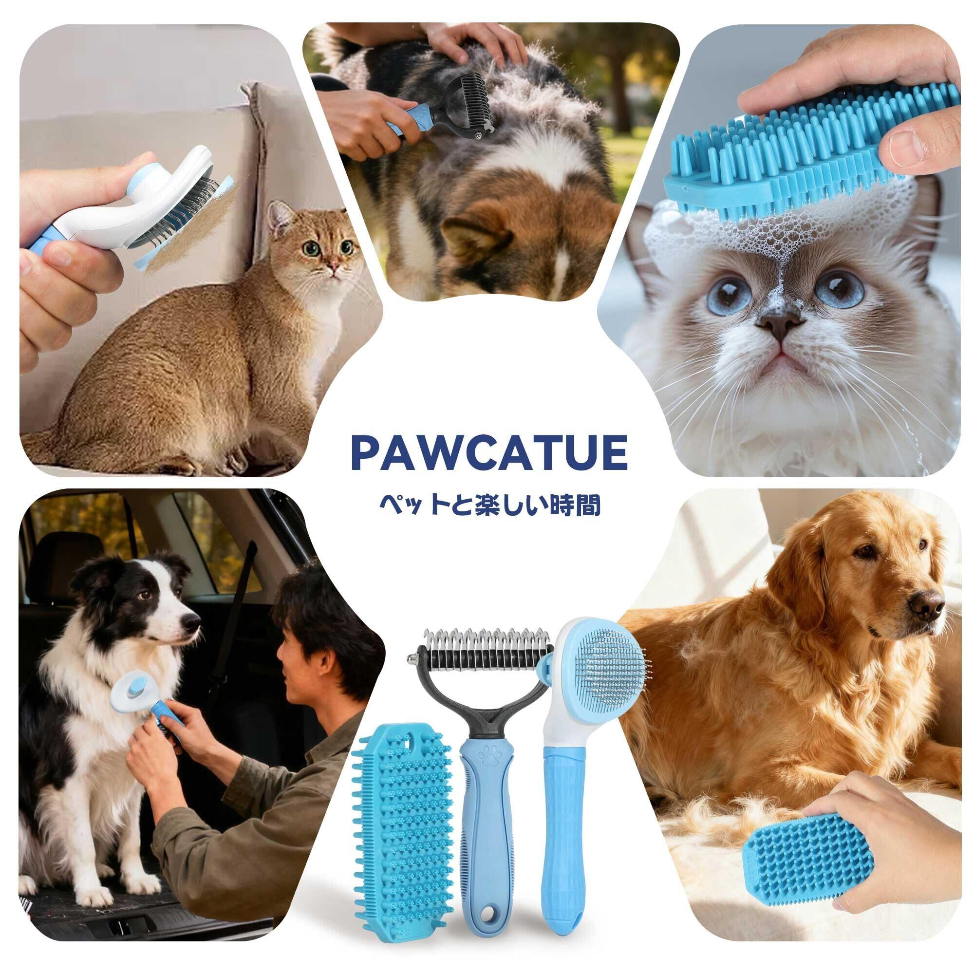 【3点セット】ペットブラシ 犬 猫 抜け毛取り グルーミングセット スリッカーブラシ デマッティングコーム シリコンブラシ 長毛・短毛兼用 お手入れ簡単 PAWCATURE