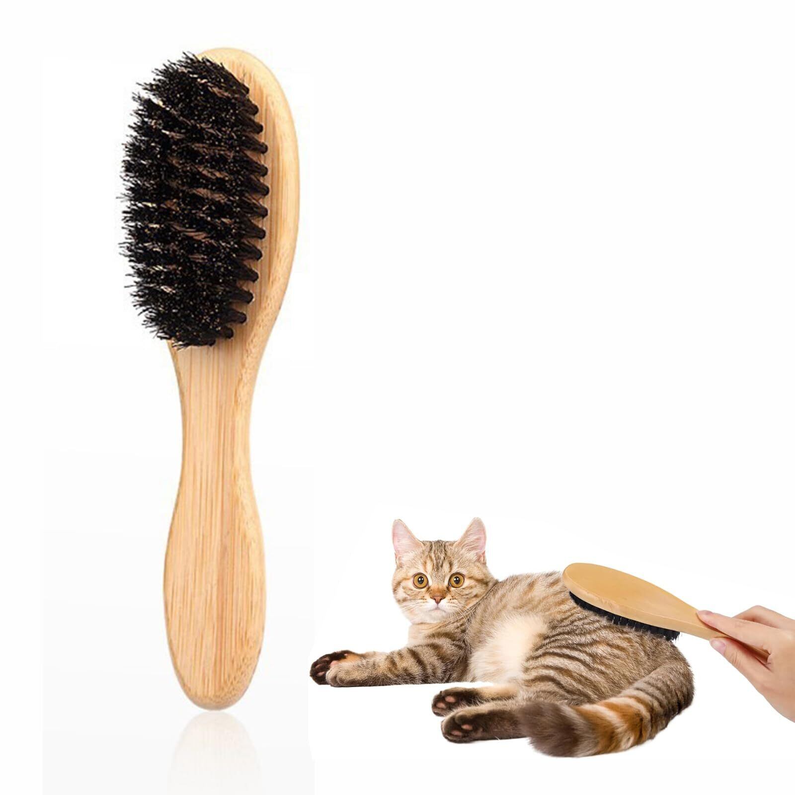 【短毛種の猫に最適】猫 ぶらし このキャットブラシは、子猫、短毛種の猫、毛の細い猫、敏感な猫に最適です。豚毛ブラシ 柔らかく優しい使い心地で、細い毛をマッサージし、毛のもつれをほどきます。