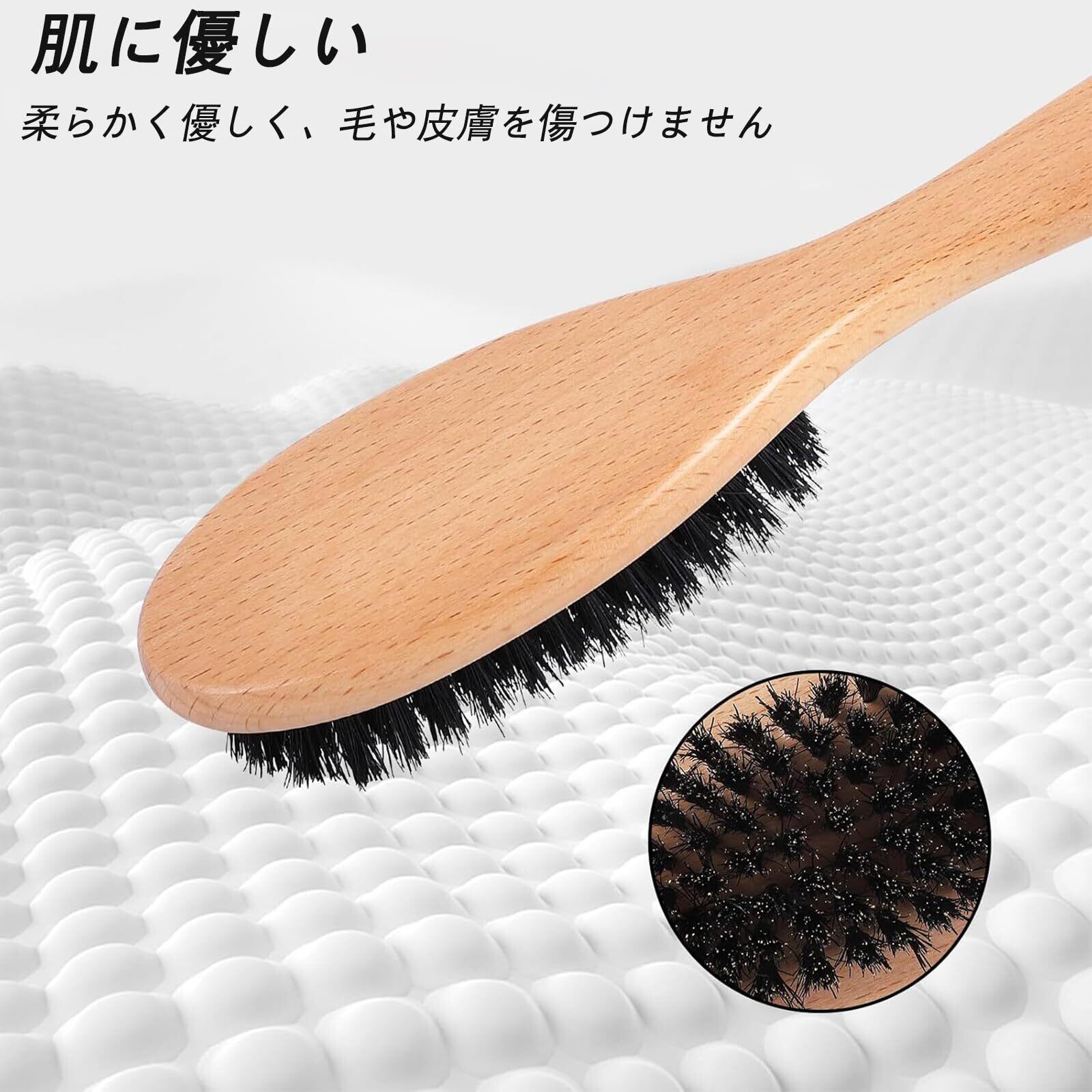 【プレミアム品質】天然素材、高級ブナ材、そして高密度の猪毛で作られたこのブラシは、柔らかく快適なので、ペットの敏感な肌にも最適です。馬毛ブラシ 天然の猪毛を使用しているため、最初は多少の抜け毛がありますが、徐々に抜け毛はなくなります。