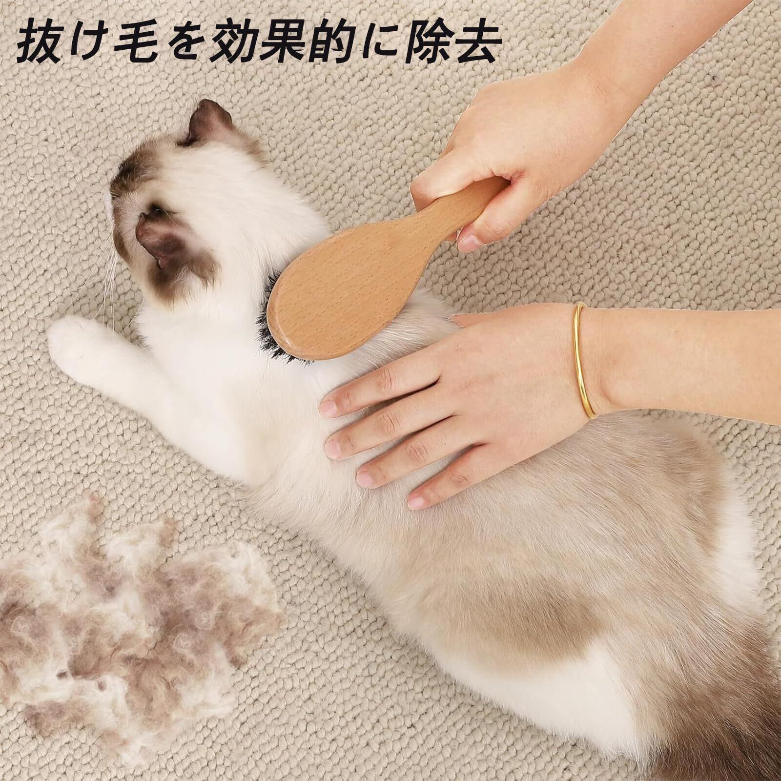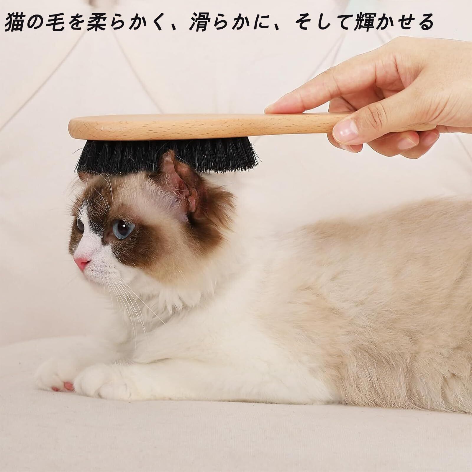 【柔らかくて優しい】猫 ブラシ 猪毛は硬すぎず柔らかすぎず、程よい硬さです。ワイヤーやプラスチック製のブラシは猫の肌に負担をかけがちですが、猪毛ブラシは顔や足にも使えるほど柔らかく、被毛を引っ張ったり傷つけたりすることなく、心地よく、愛情を込めてケアできます。