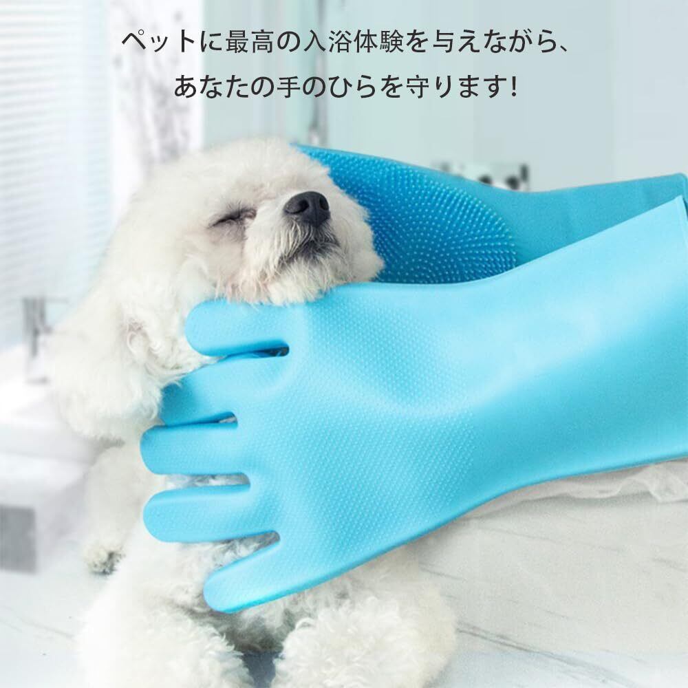 BIUTEFOR ペットブラシ 手袋 犬 シャンプーブラシ 猫 ブラッシング 猫の毛取り 【左右1ペア】入浴、マッサージ、脱毛