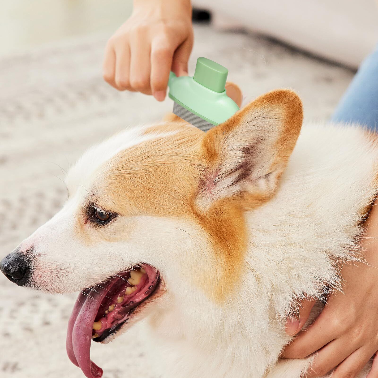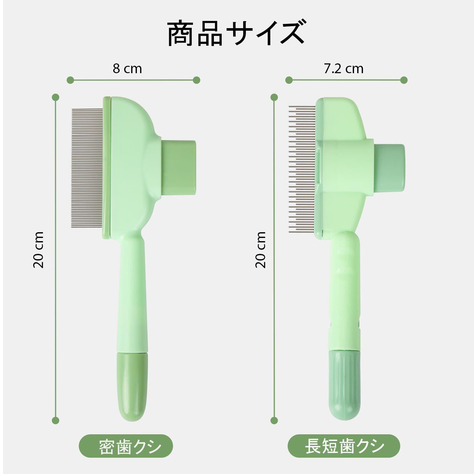 猫犬用コーム くし 櫛 ブラシ 毛のワンタッチ除去ボタン 密歯&長短歯2点セット 長毛・短毛対応 痛くないやさしい設計