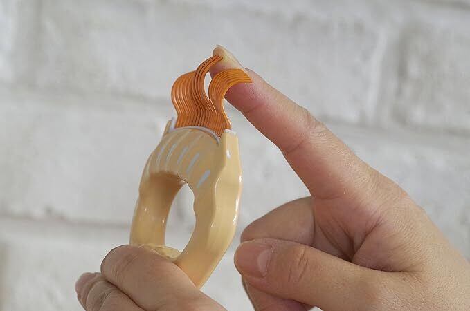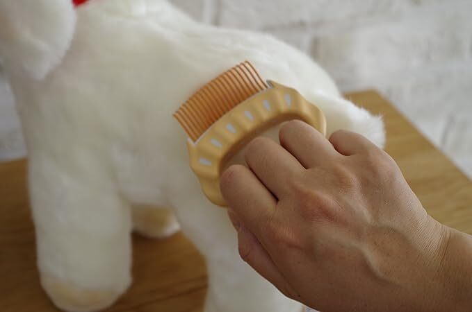 使用方法 使いはじめはからむ毛に注意し、少しづつ解きほぐしてください。 大きい毛玉がある場合は、ペットに注意してハサミ等で切り取ってください。 汚れは洗剤と古歯ブラシなどで落とし、95℃以下の熱湯かアルコールで時々消毒してください。
