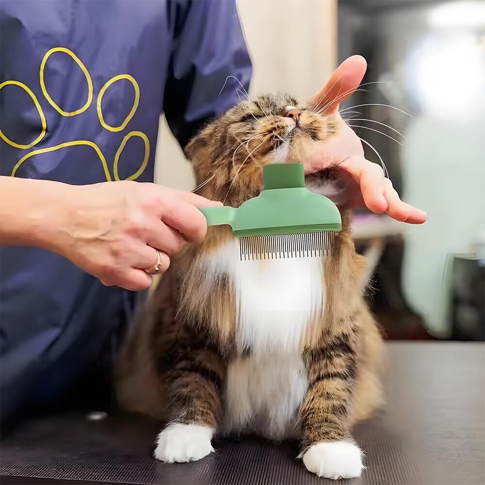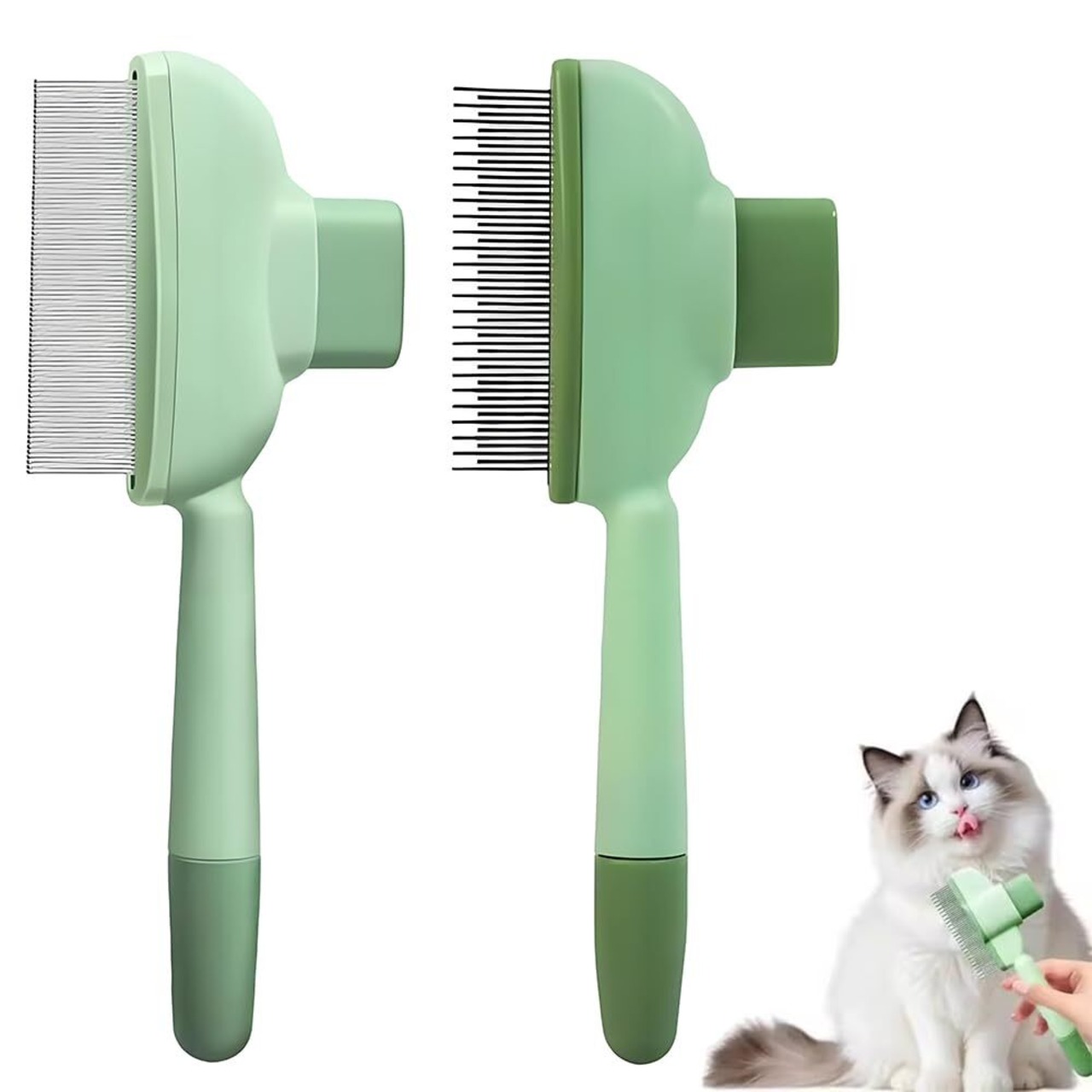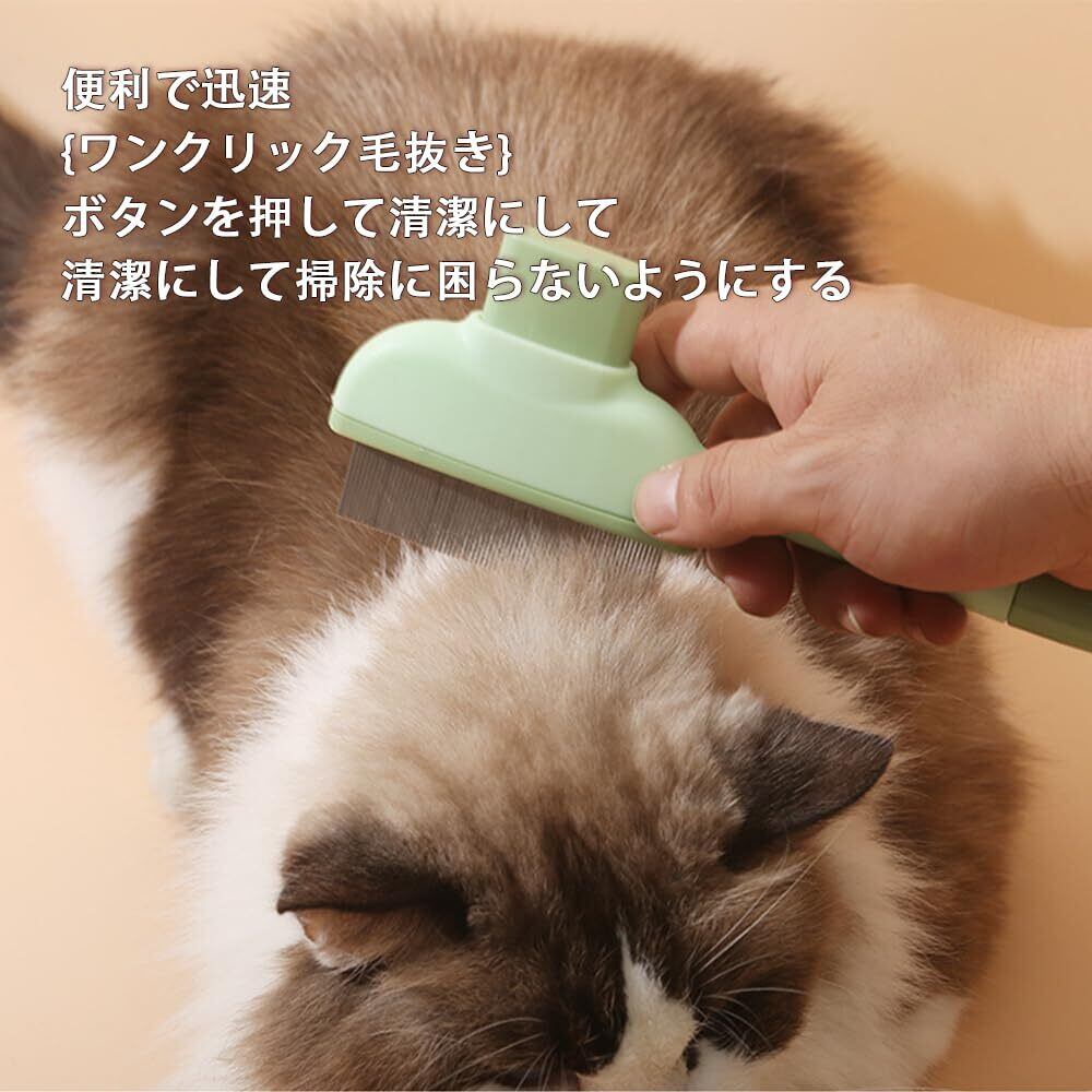 XIANFQNKJ 猫犬用コーム ペット用ブラシ ワンプッシュ式 抜け毛取りコーム 猫犬兼用 ノミ取り櫛 密歯&長短歯 痛くない くし 長毛・短毛種対応 トリミング用 グルーミングコーム(グリーン)