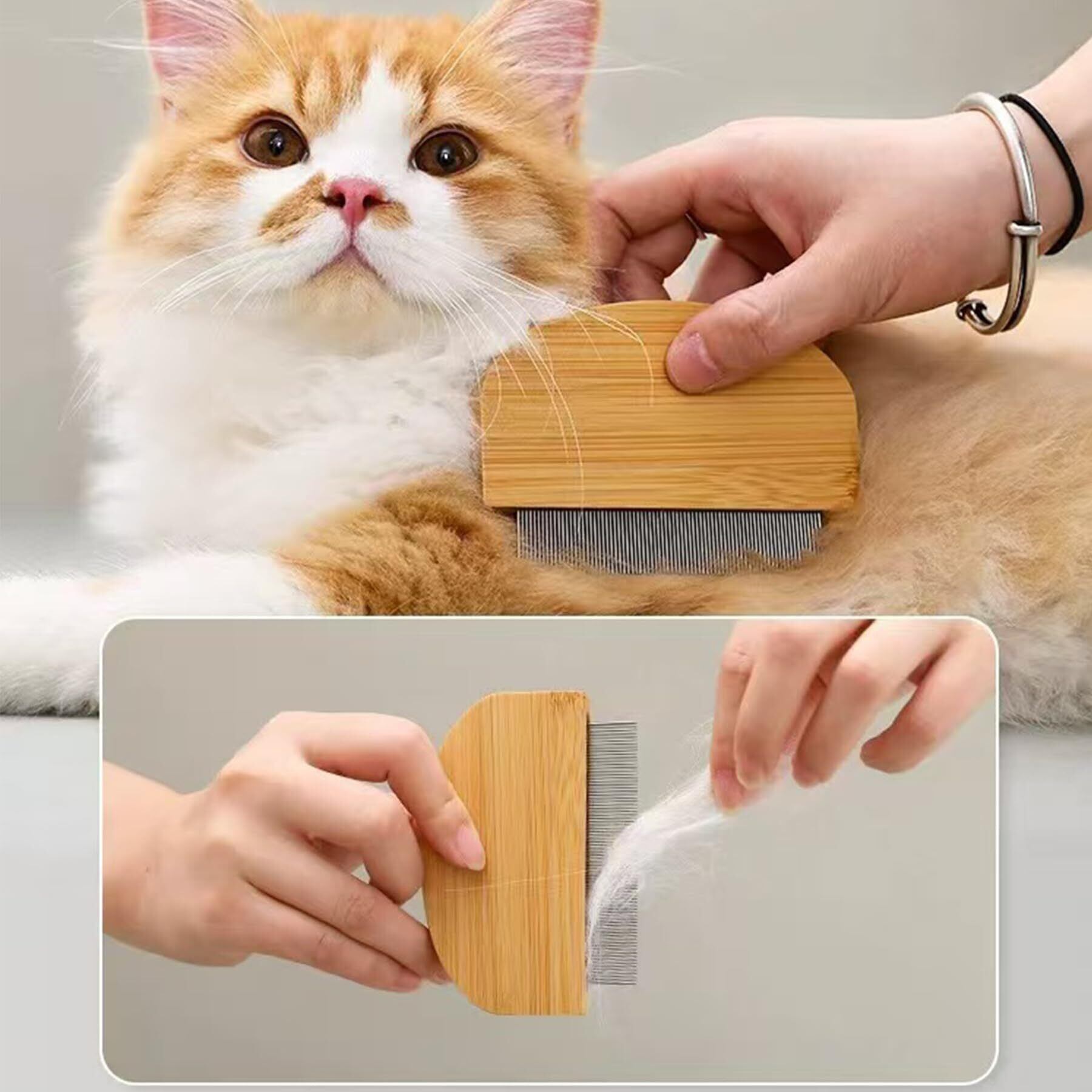 【ペットの毛づくろい専用】:櫛の先端に丸みがあるので、ペットの肌に優しく、毎日のグルーミングに最適です。